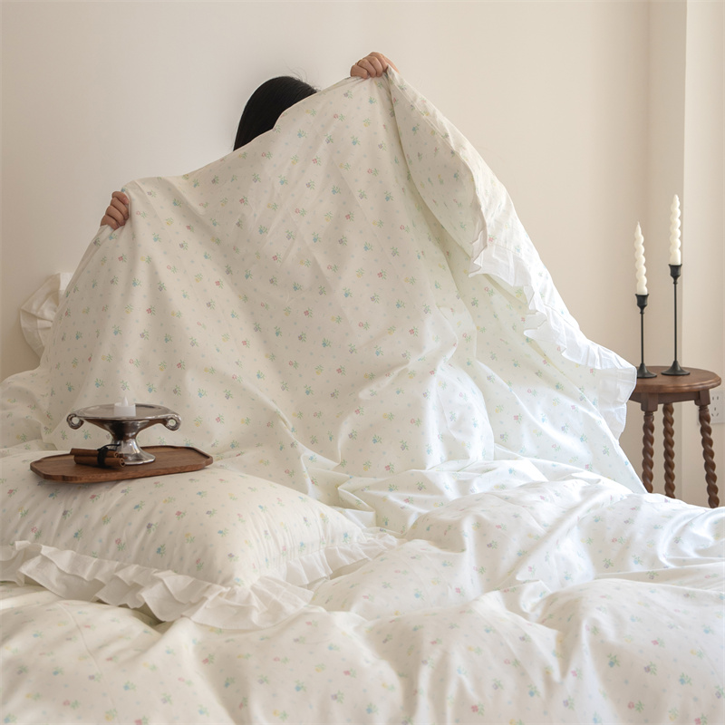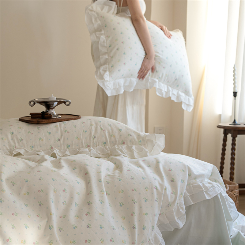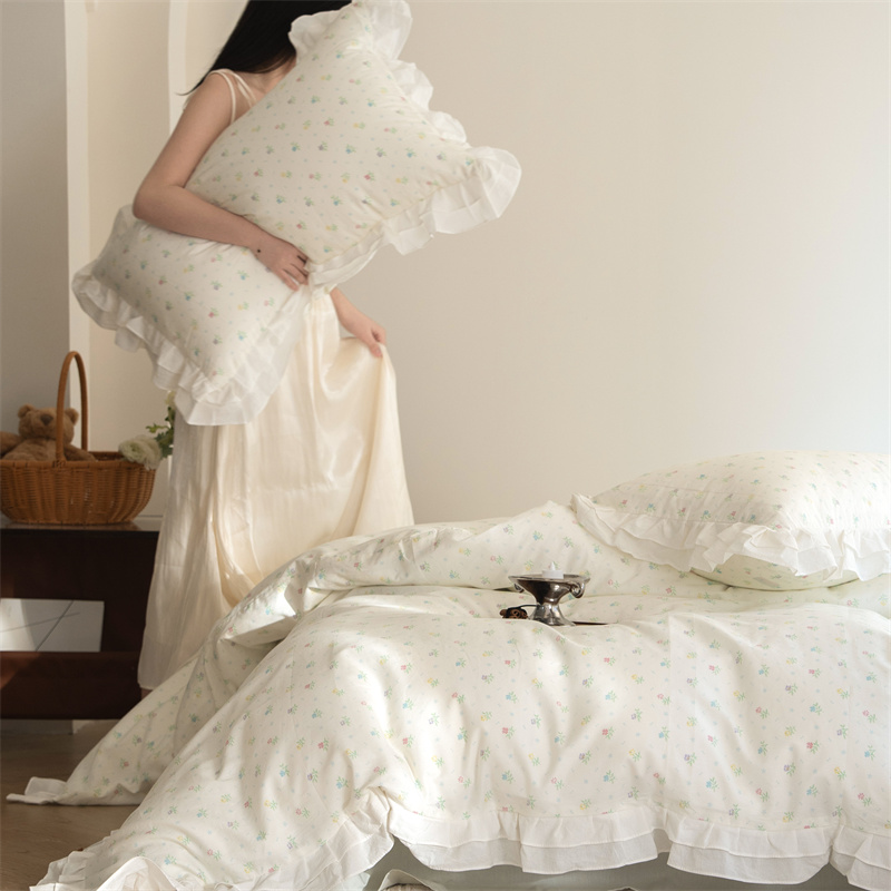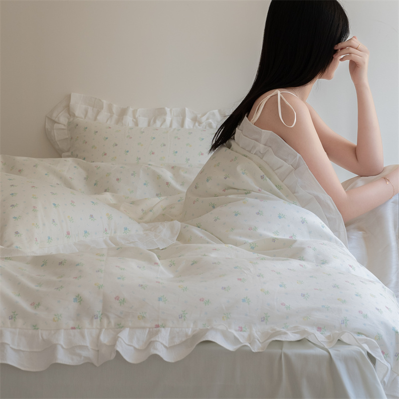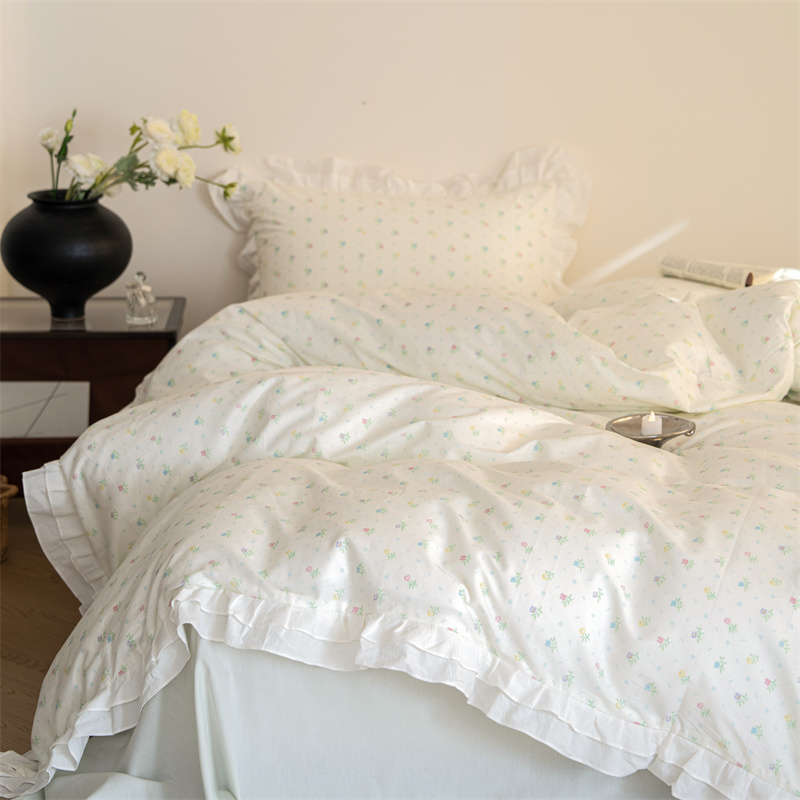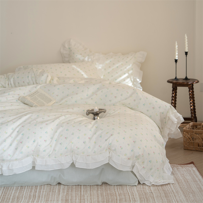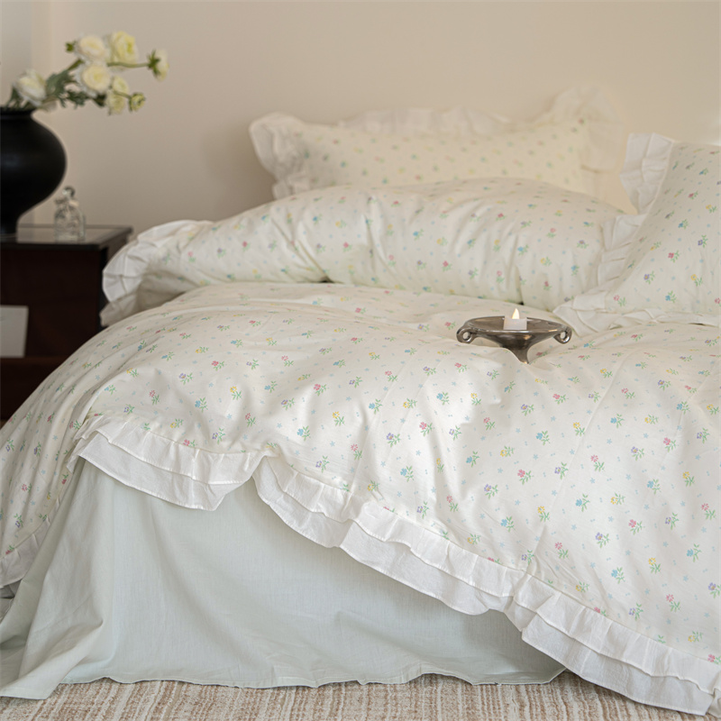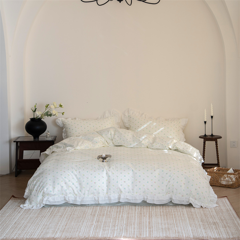 当前位置: 91家纺网 > 商品网购 > 床品套件 > 四件套 > 全棉普通四件套 > 尺素 2025年小碎花纯棉花边四件套全棉田园风荷叶边被套纯棉床单棉法式套件1.8纯色床笠套件 花西子冰沙绿(花边款)