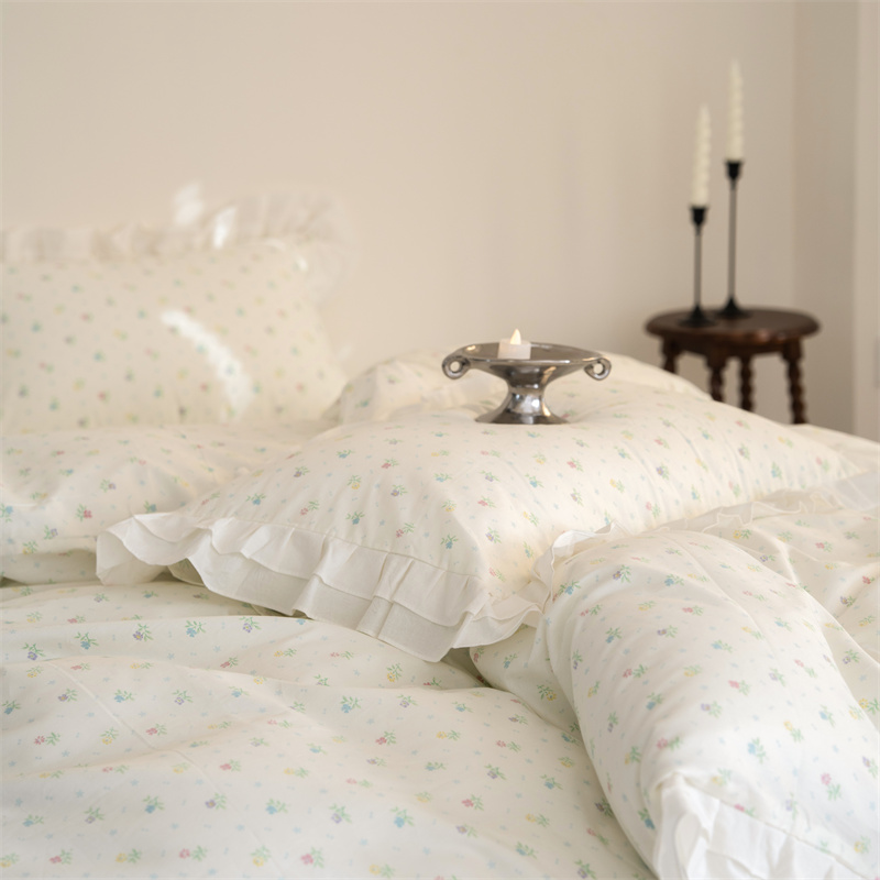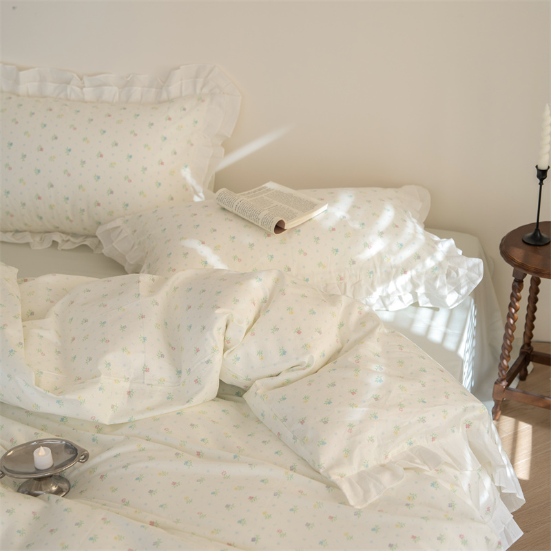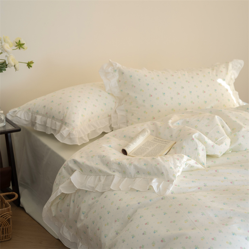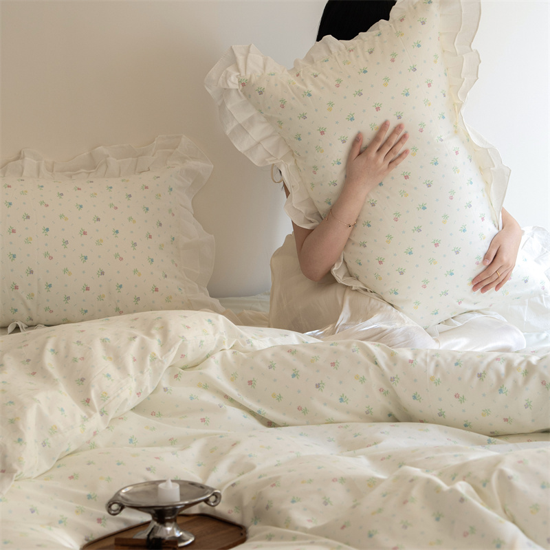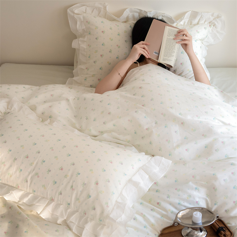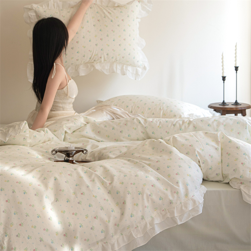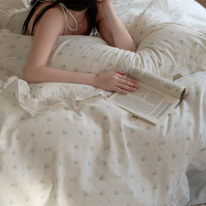 当前位置: 91家纺网 > 商品网购 > 床品套件 > 四件套 > 全棉普通四件套 > 尺素 2025年小碎花纯棉花边四件套全棉田园风荷叶边被套纯棉床单棉法式套件1.8纯色床笠套件 花西子冰沙绿(花边款)