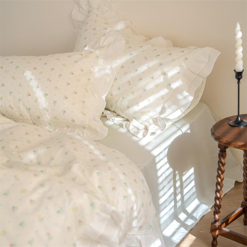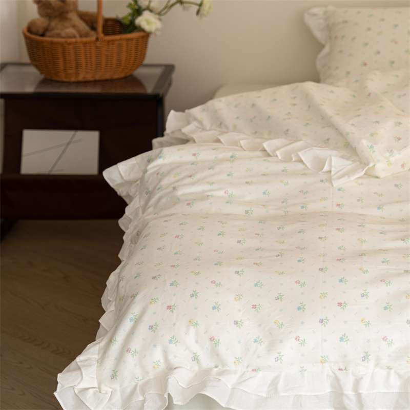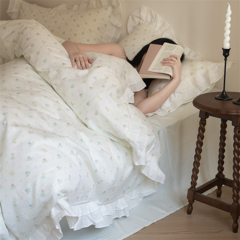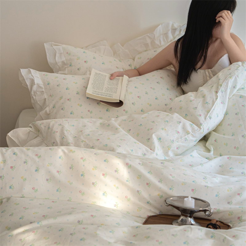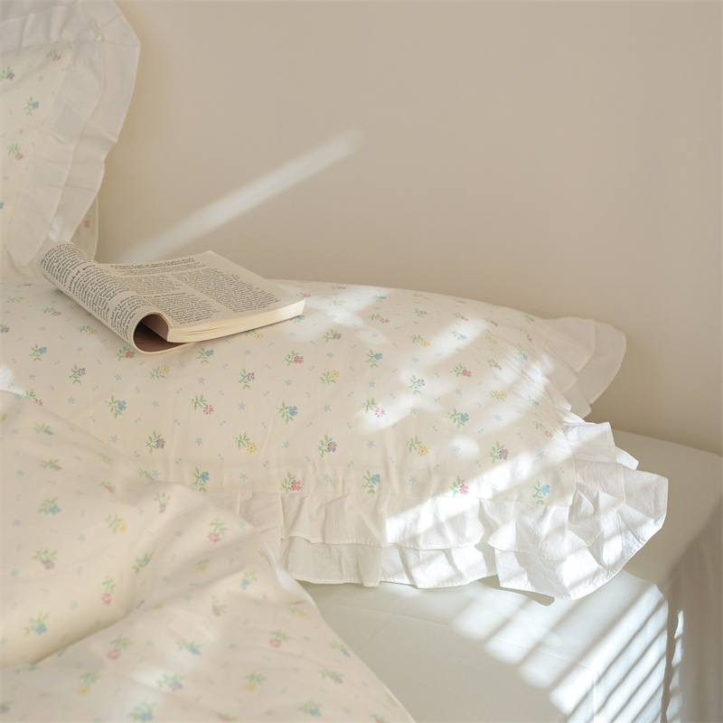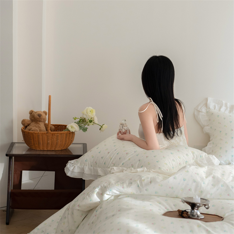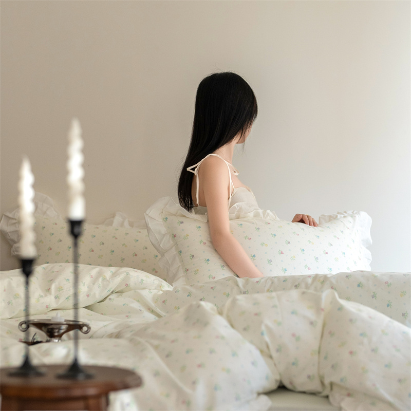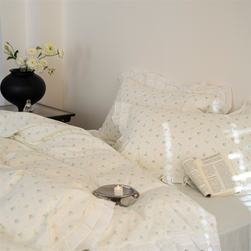 当前位置: 91家纺网 > 商品网购 > 床品套件 > 四件套 > 全棉普通四件套 > 尺素 2025年小碎花纯棉花边四件套全棉田园风荷叶边被套纯棉床单棉法式套件1.8纯色床笠套件 花西子冰沙绿(花边款)