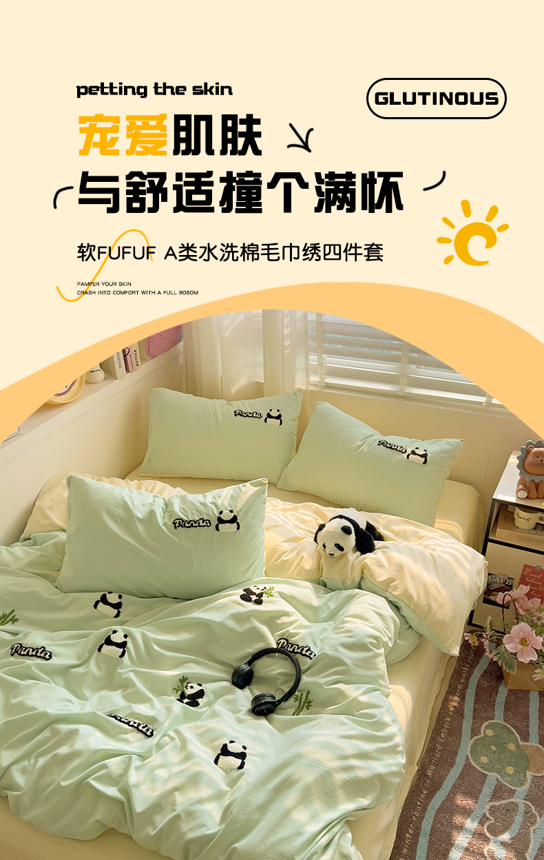 当前位置: 91家纺网 > 商品网购 > 床品套件 > 四件套 > 水洗棉四件套 > 优选良品 2025新款超柔水洗棉INS小红书毛巾绣卡通四件套学生三件套 翠竹熊猫