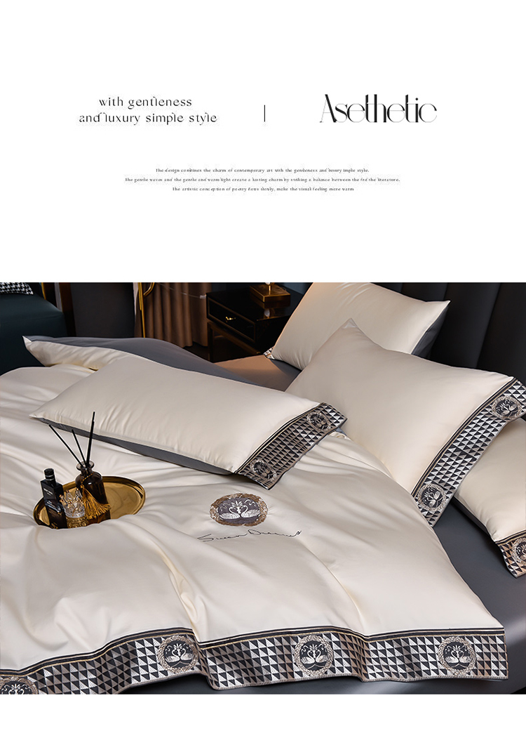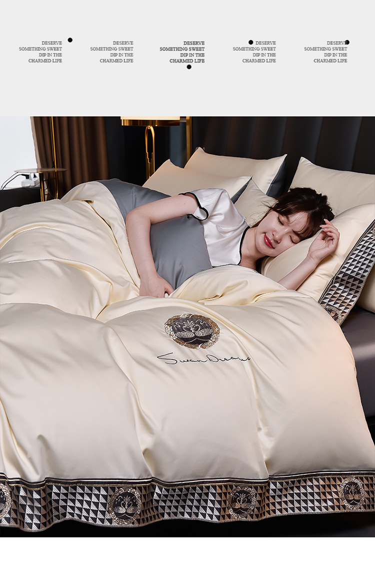 (总)瑞驰家纺 2025新款长绒棉绣花莱桉系列四件套,莱桉-贝壳白,莱桉-朵拉灰,莱桉-驼褐,莱桉-棕橙