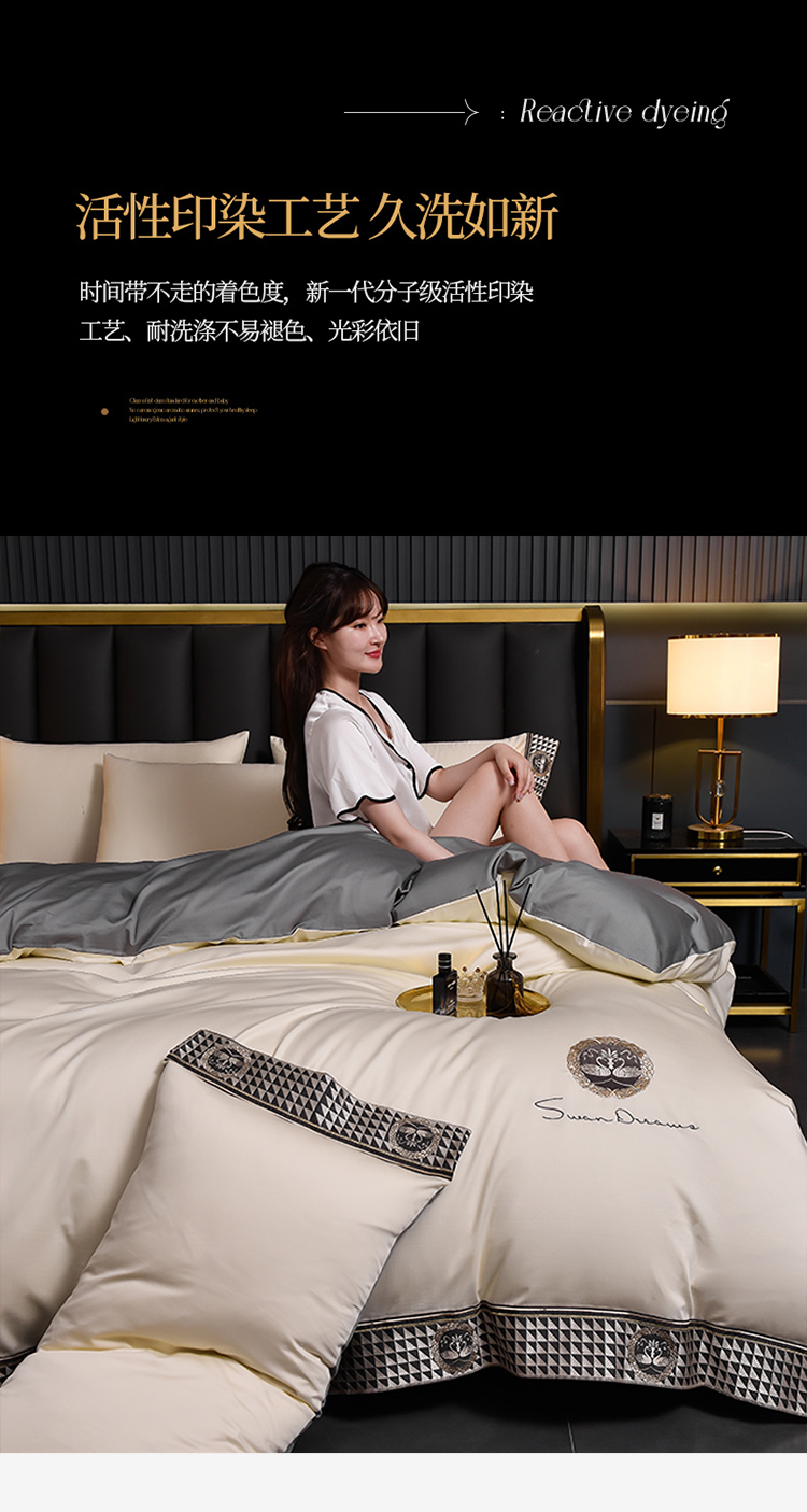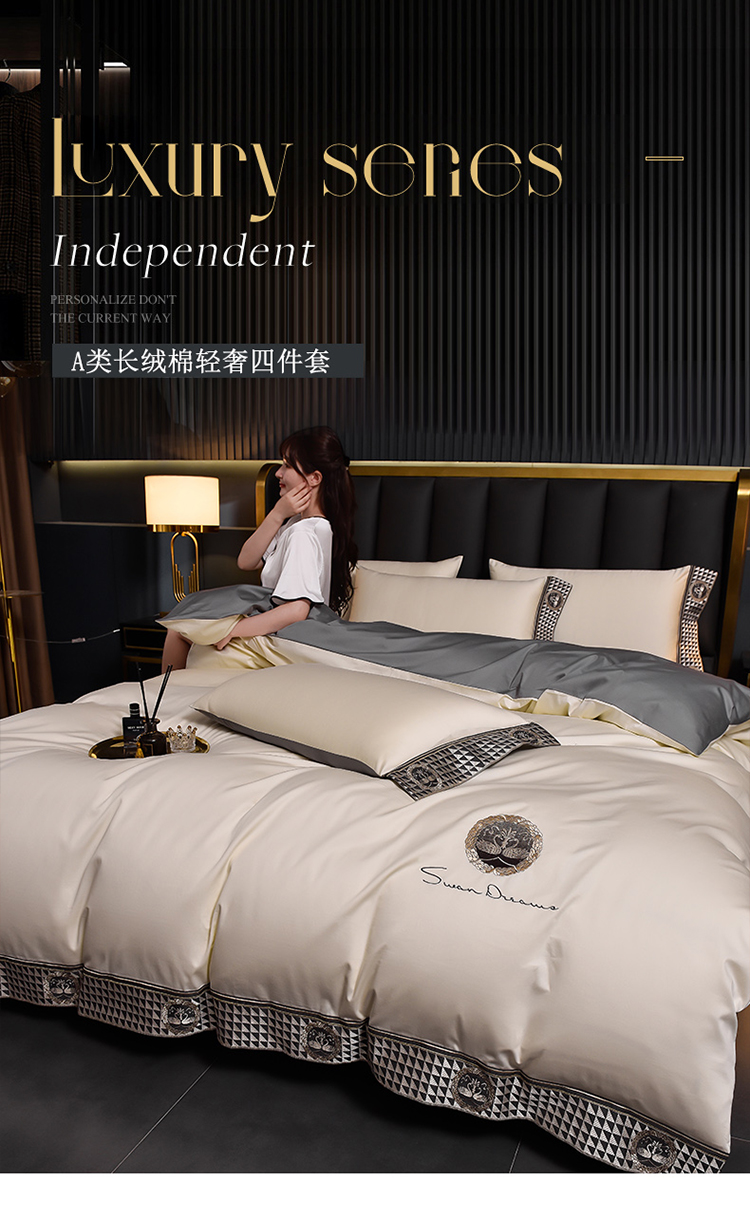 (总)瑞驰家纺 2025新款长绒棉纯棉绣花四件套--千寻系列,千寻-礼遇灰,千寻-茗萃蓝,千寻-莫兰迪白,千寻-绅士灰,千寻-盛世兰,千寻-水晶玫瑰,千寻-香槟金