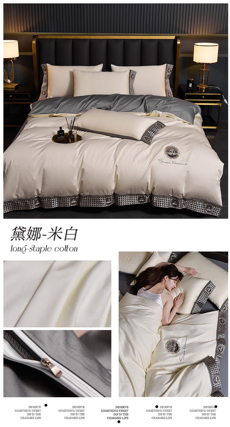 商品名称:2025新款长绒棉绣花黛娜系列四件套 黛娜-米白