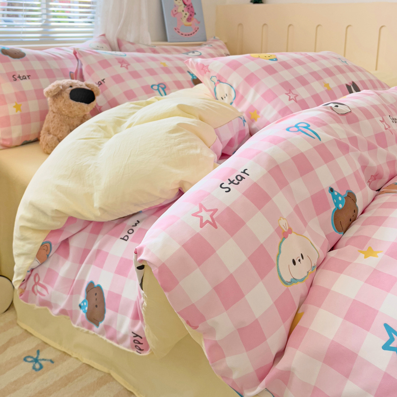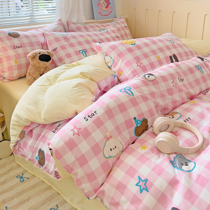 商品名称:港岛妹妹 2025新款单被套 粉格小狗