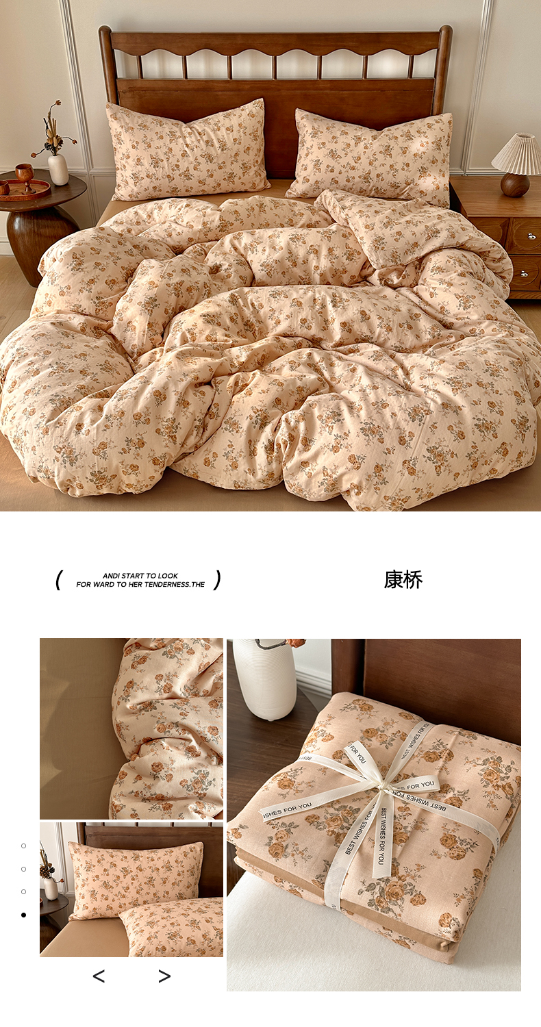 商品名称:呗旺鹿 2025新款A类母婴级全棉有氧双层纱印花四件套 康桥