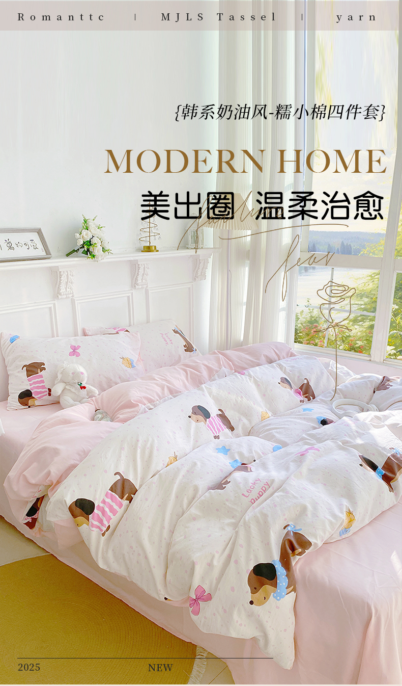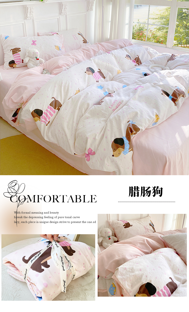 当前位置: 91家纺网 > 商品网购 > 床品套件 > 四件套 > 水洗棉四件套 > 丫丫家纺 2025新小红书直播热款水洗糯小棉四件套软敷敷糯叽叽ins卡通小清新学生床加大号小号单被套单床笠三四 腊肠狗