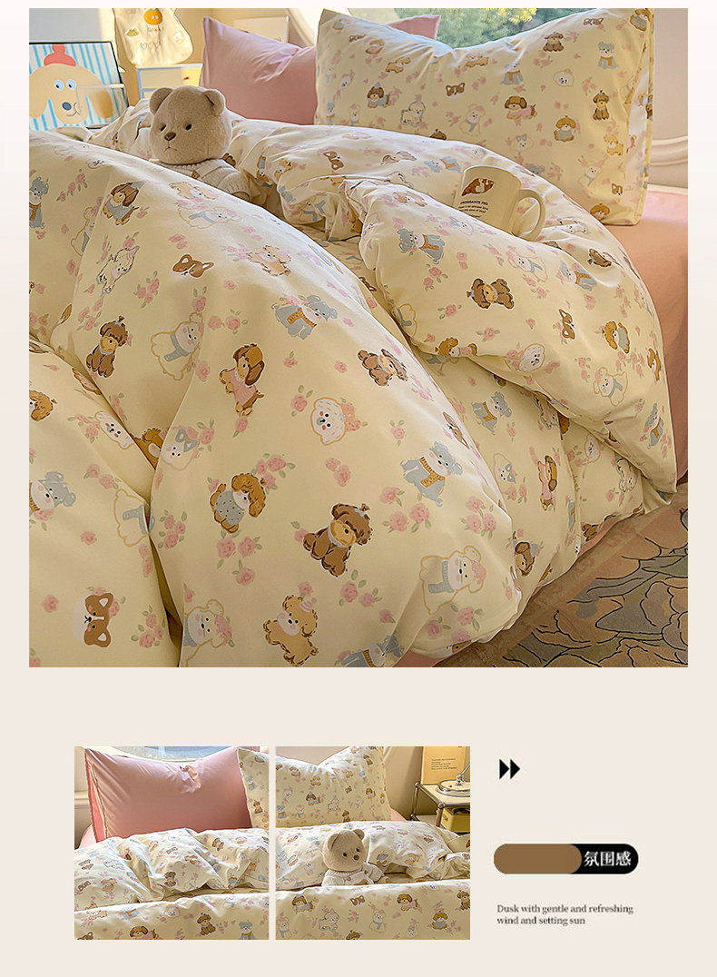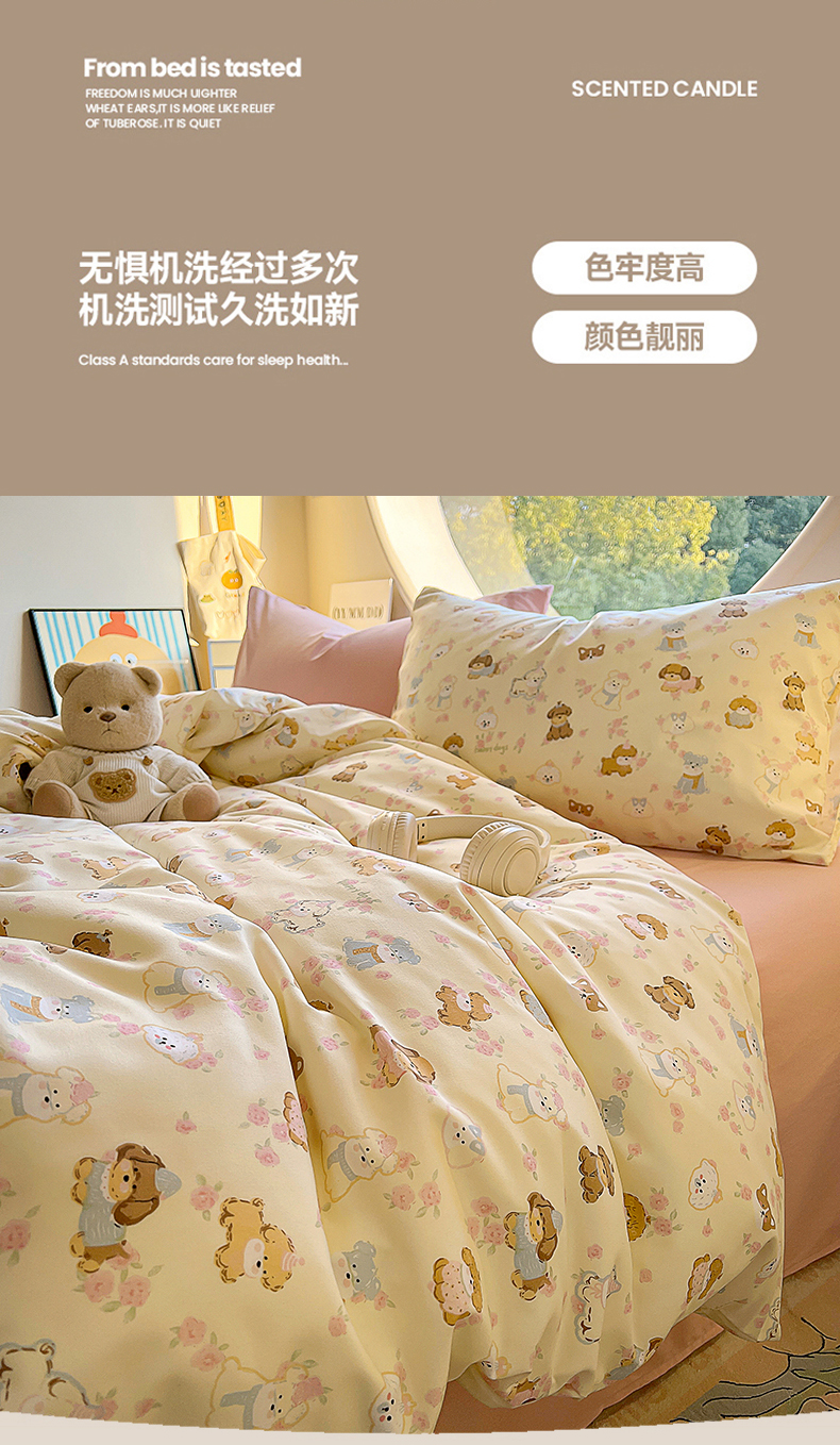 商品名称:(总)茉礼 2025新款高克重ins风超柔软软糯糯小清新卡通印花水洗棉四件套