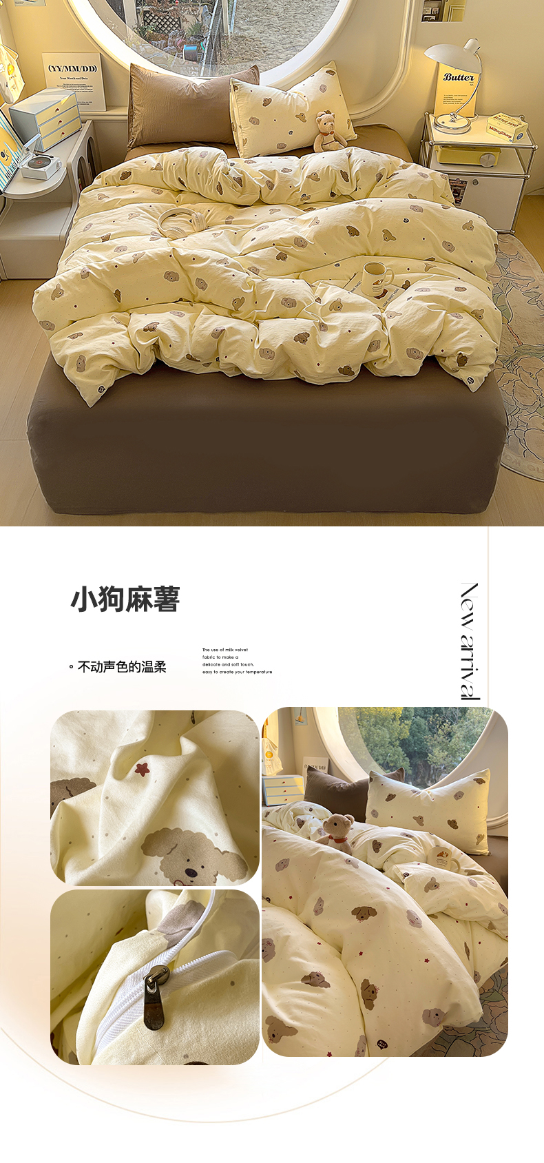 (总)茉礼 2025新款高克重ins风超柔软软糯糯小清新卡通印花水洗棉四件套,格子小狗,海盐波点,卡皮豹豹,洛丽小熊,猫咪日记,奶油小熊,甜心KT,西高地,小爱心,小狗麻薯,小卡皮,小兔花园