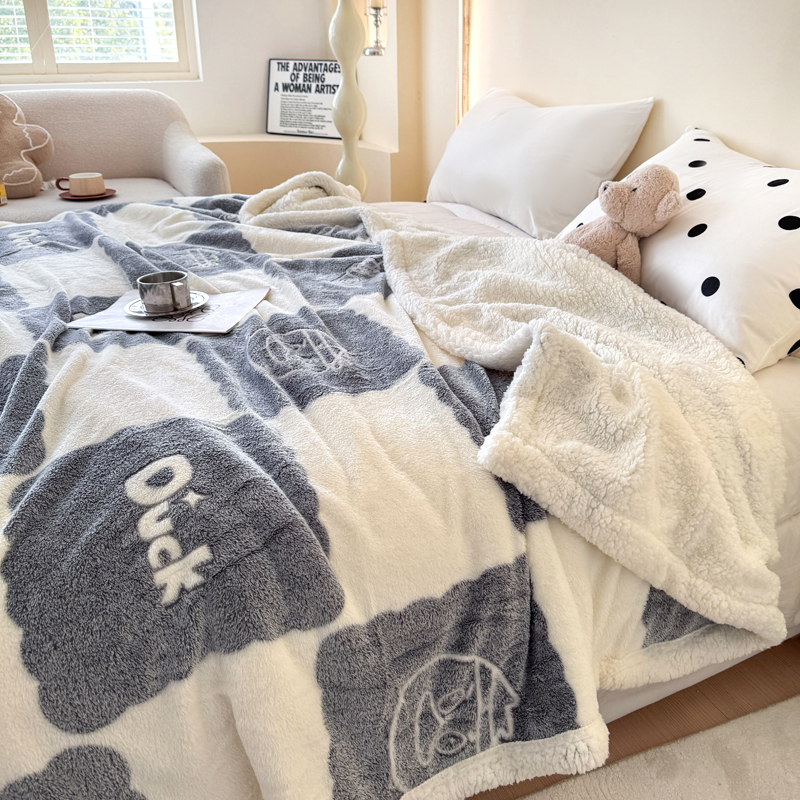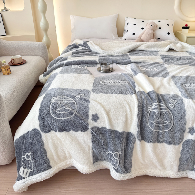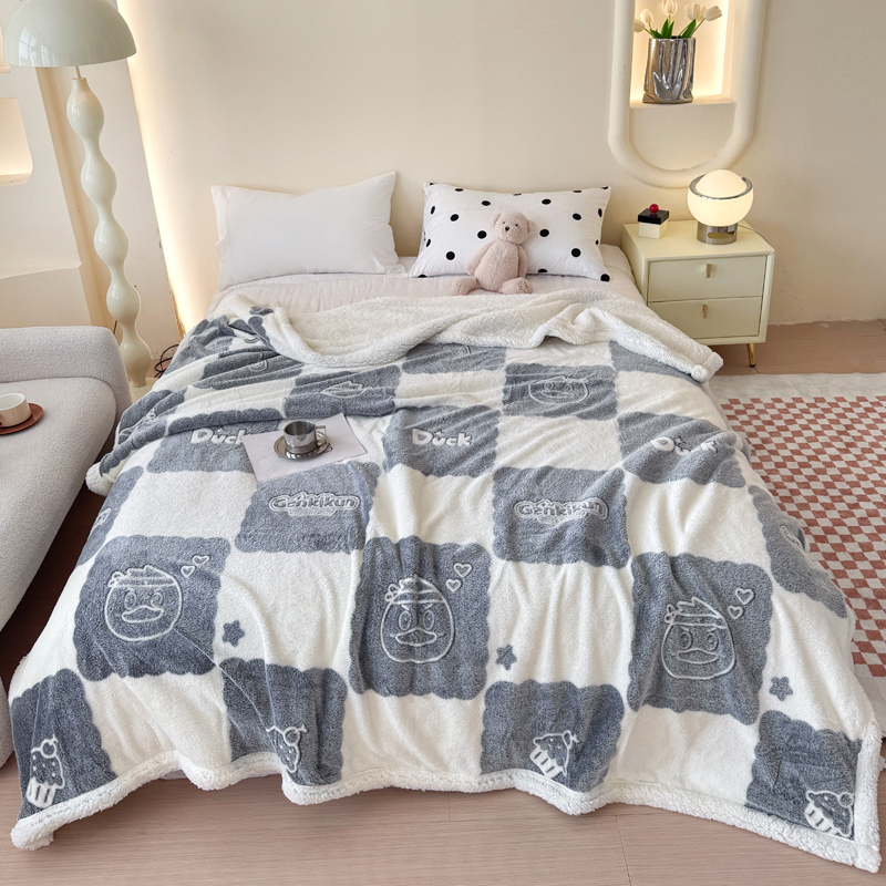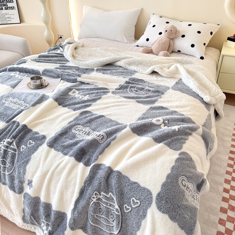 商品名称:恋佳居 2025新款羊羔绒包边雪花绒小清新毛毯 棋盘格