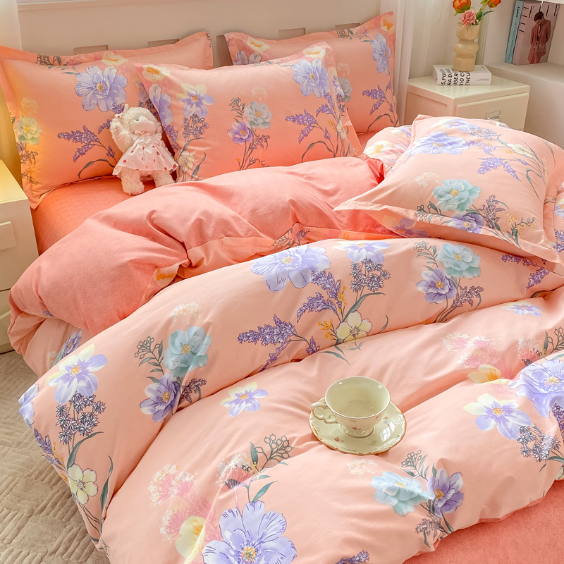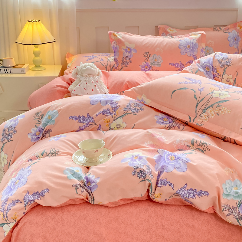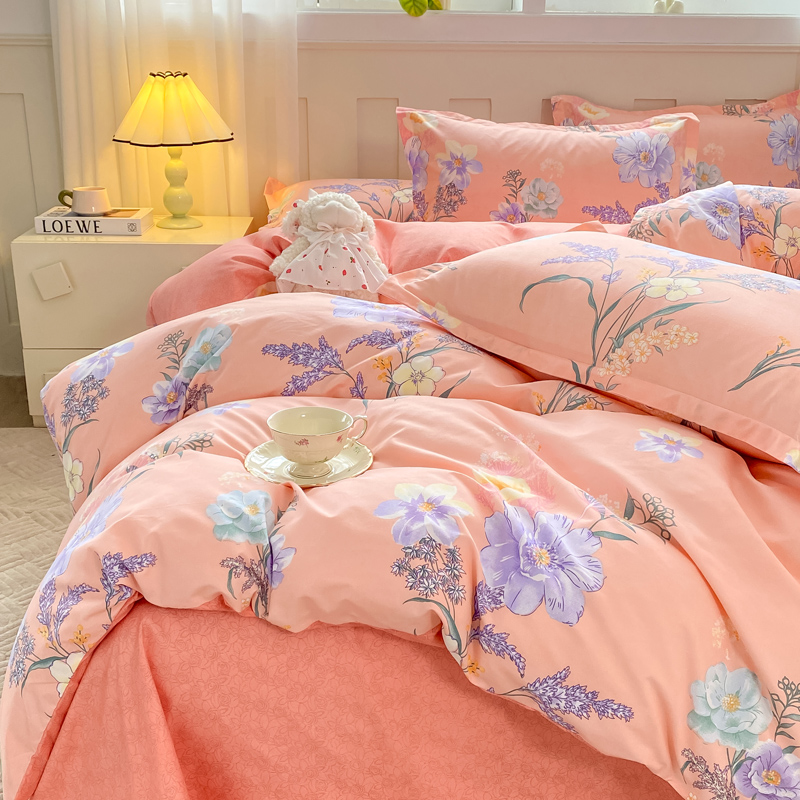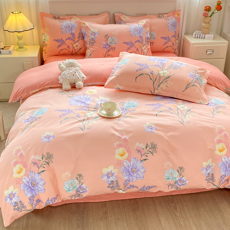2025新款植物羊绒大板磨毛活性印花四件套 沁粉佳人