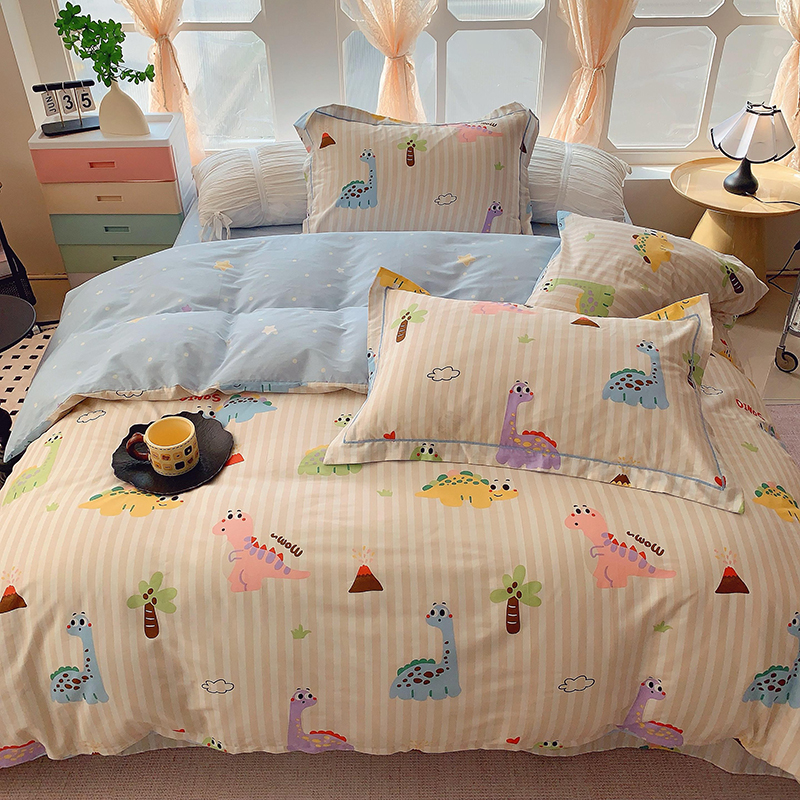 2025新款亲肤舒适小清新全棉四件套小号标准都有 多彩恐龙