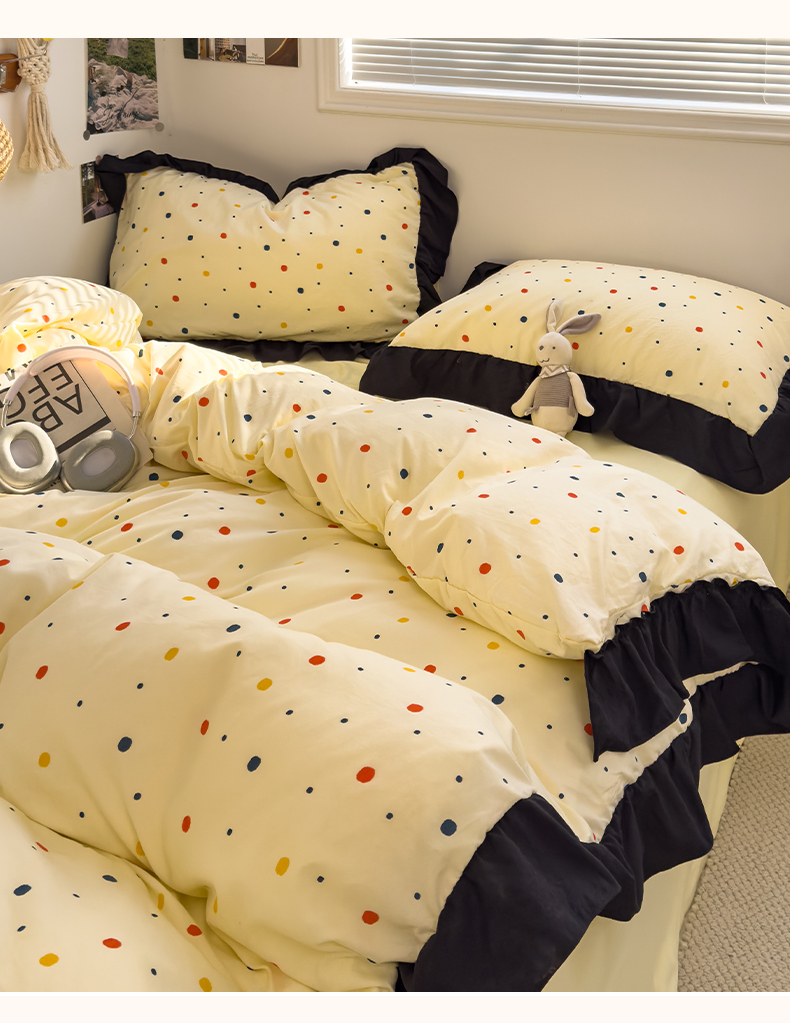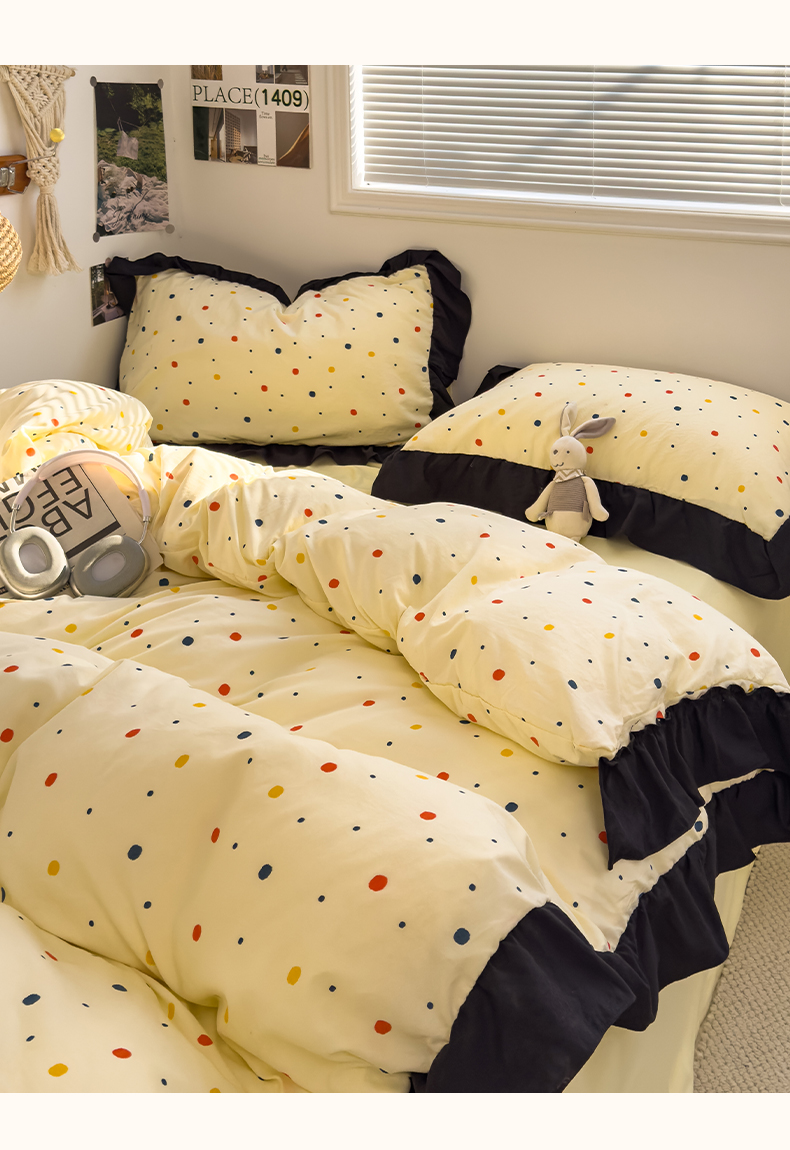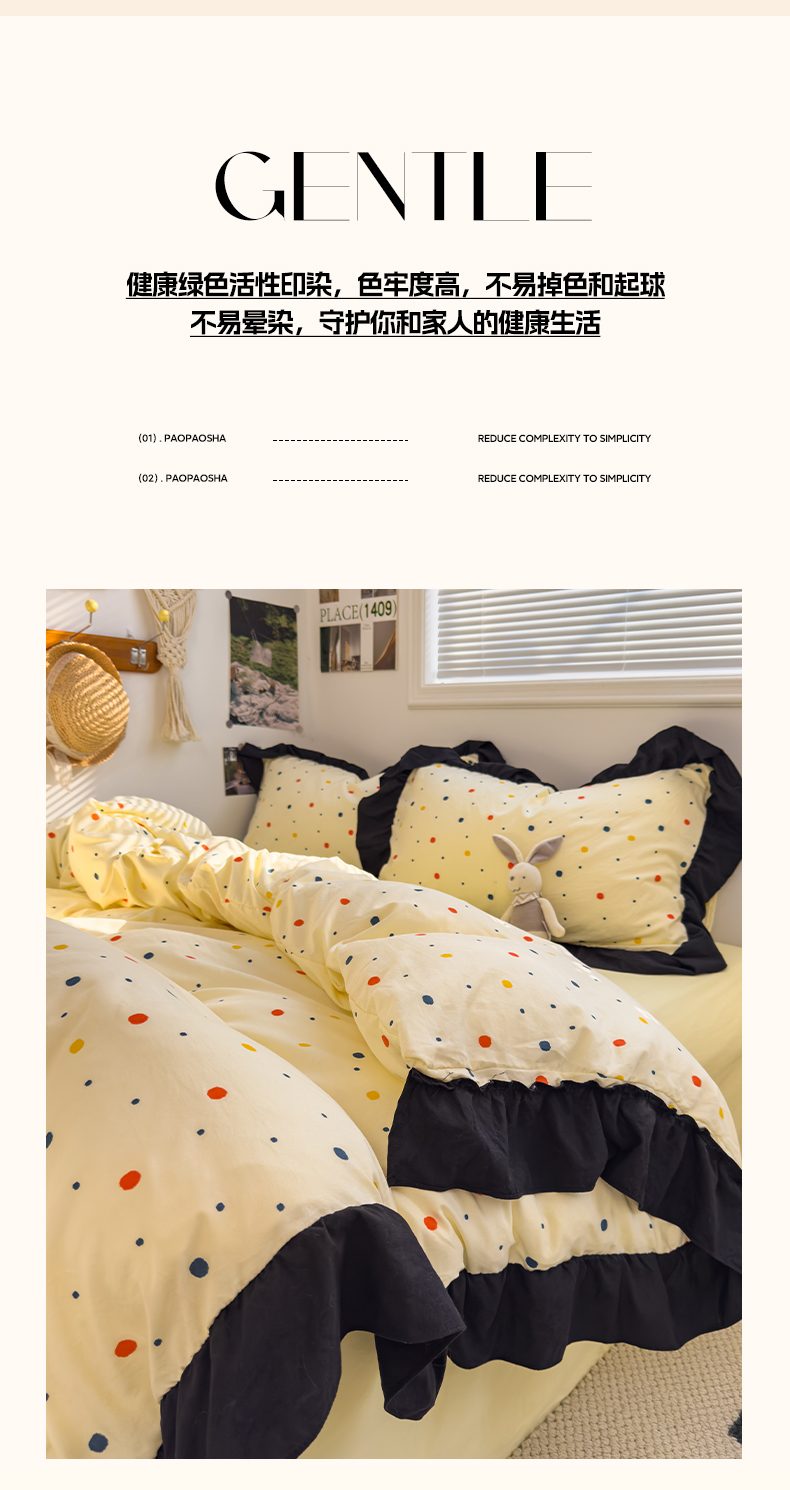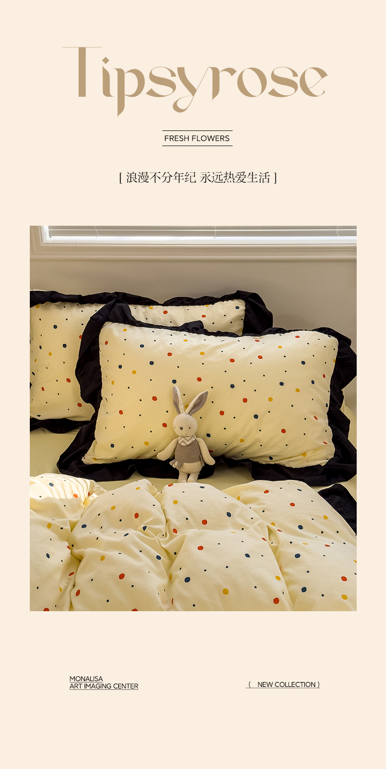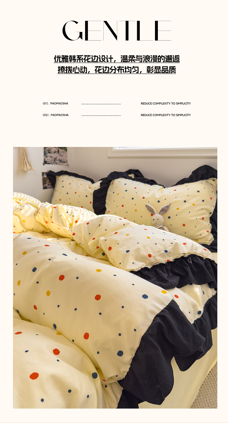 当前位置: 91家纺网 > 商品网购 > 床品套件 > 四件套 > 双层纱四件套 > 繁花家居 2025新款黑色花边赫本风水洗棉双层纱针织棉韩式花边四件套 黄梦星辰