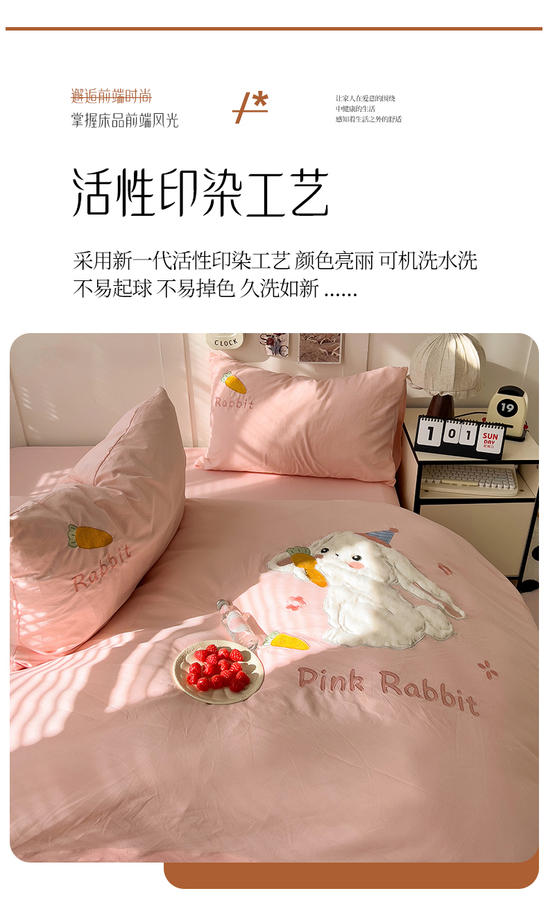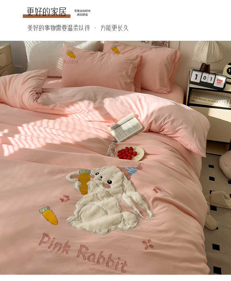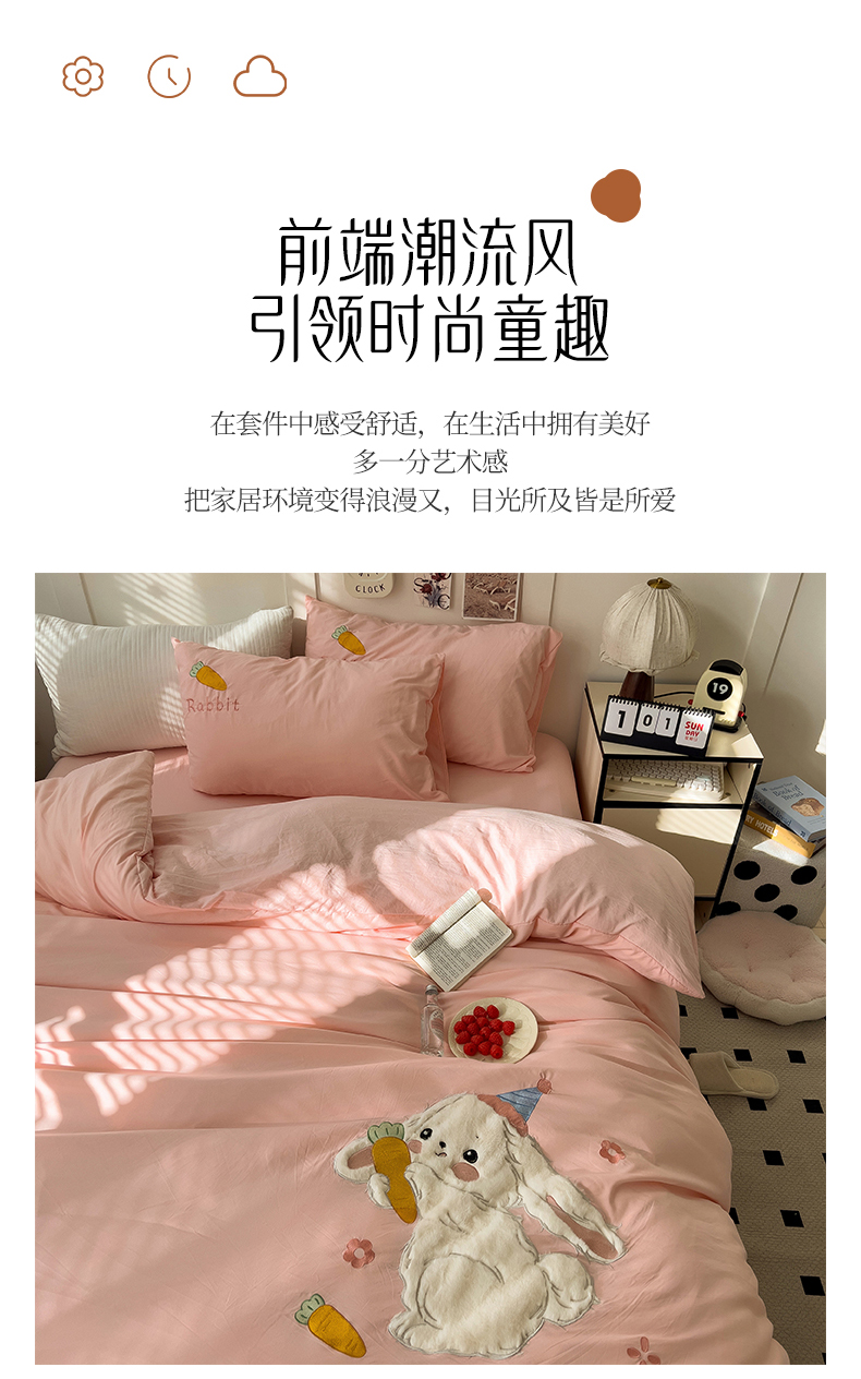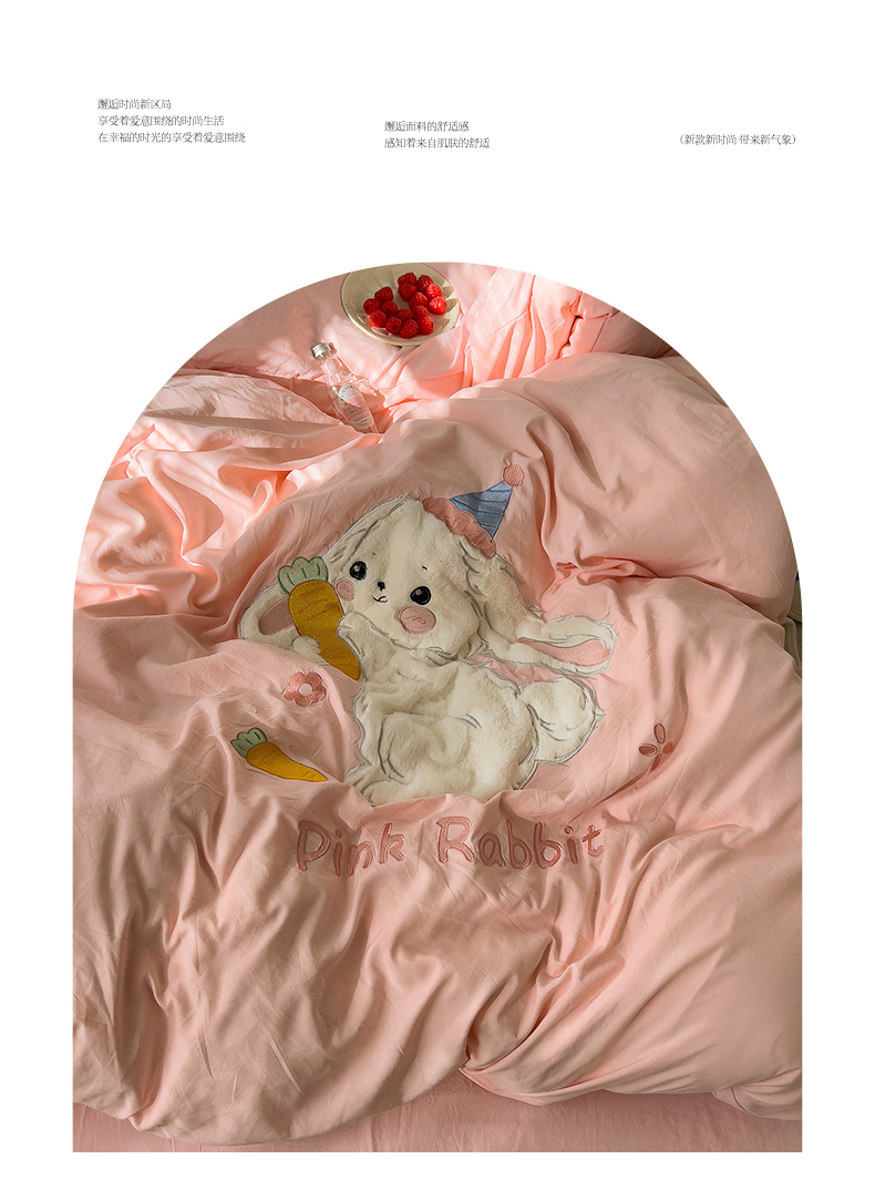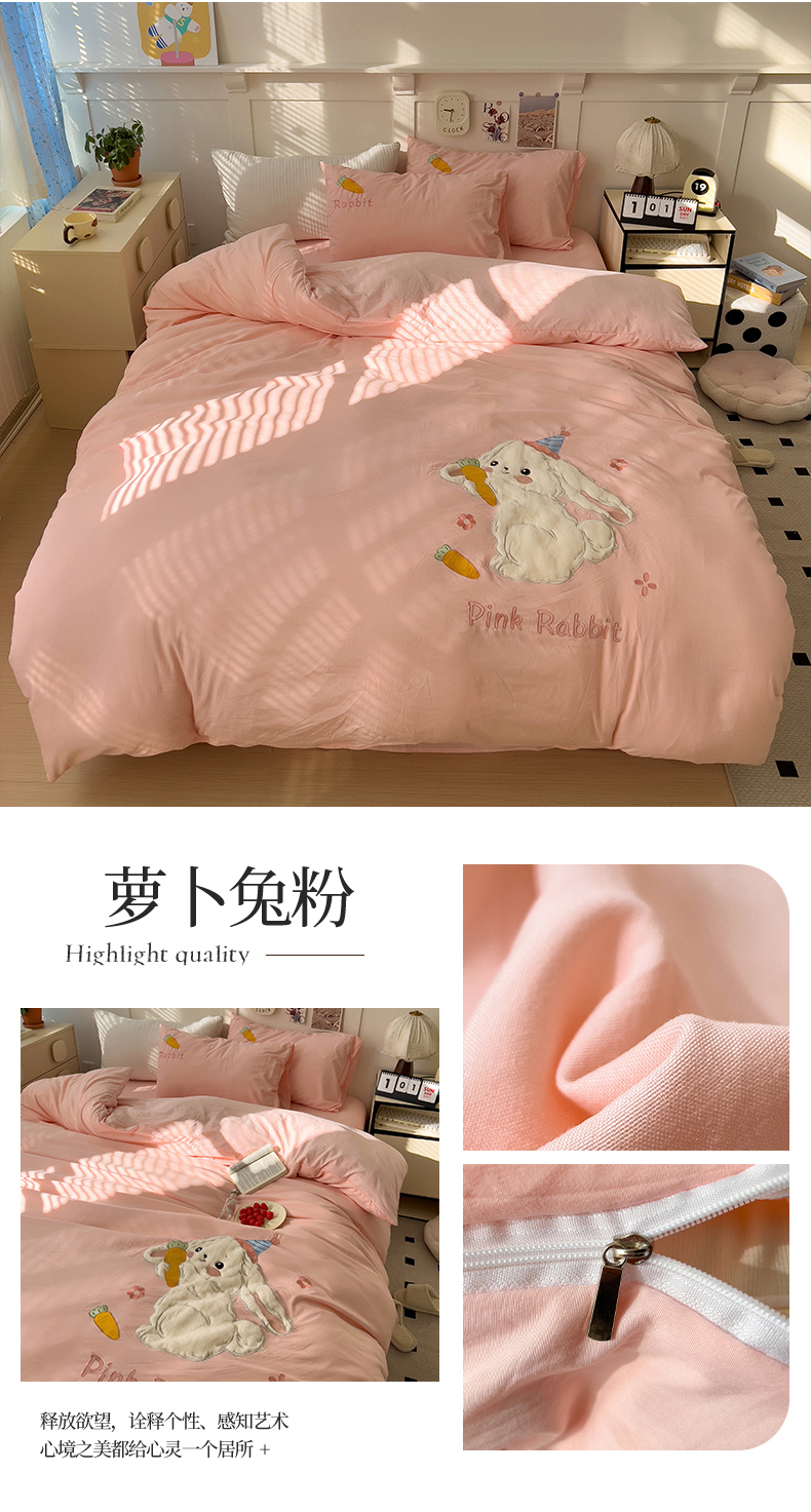 当前位置: 91家纺网 > 商品网购 > 床品套件 > 四件套 > 毛巾绣四件套 > 水墨江南 2025新款超柔水洗棉贴布绣四件套 萝卜兔粉