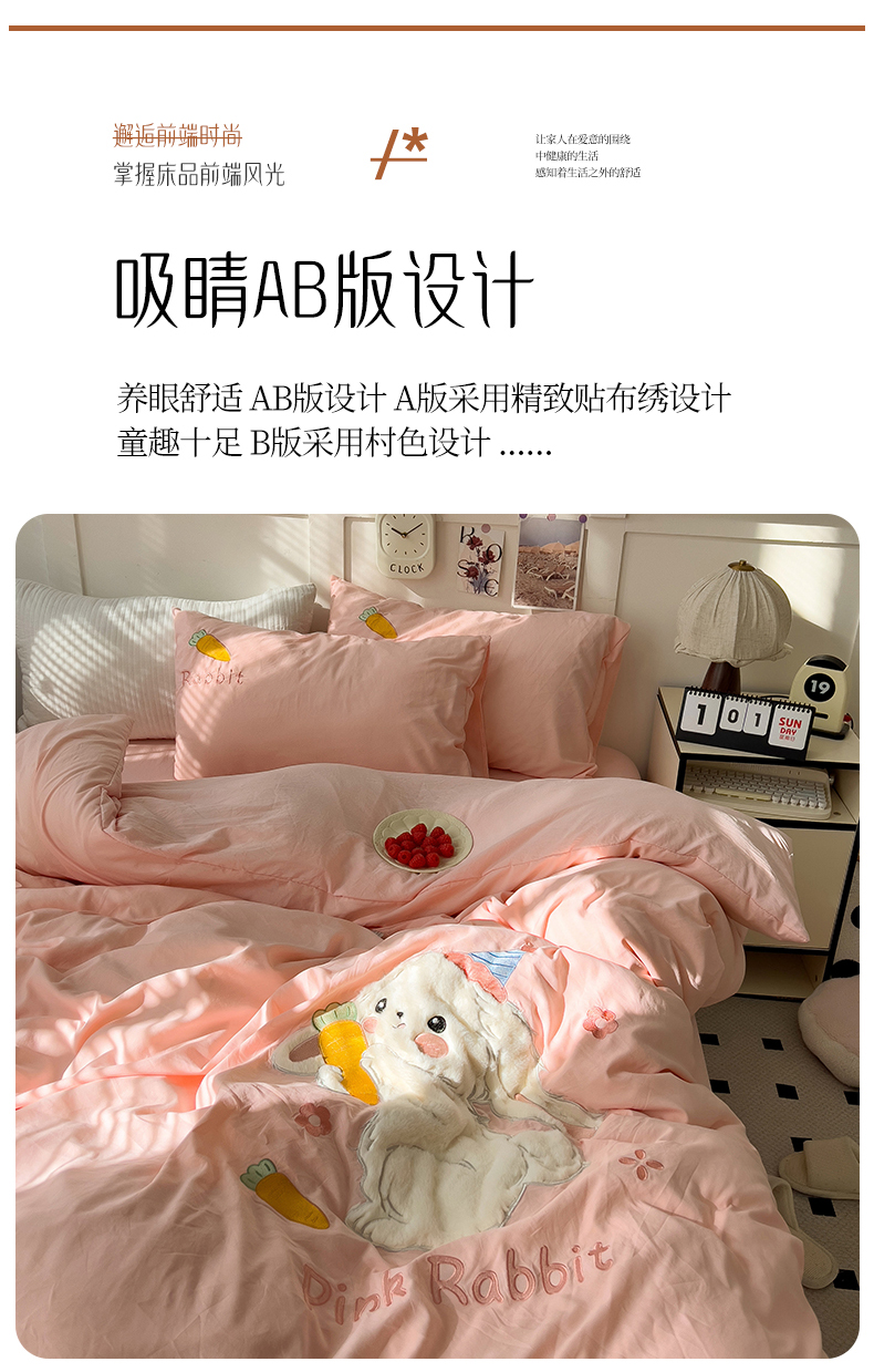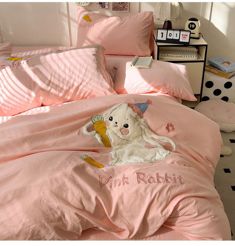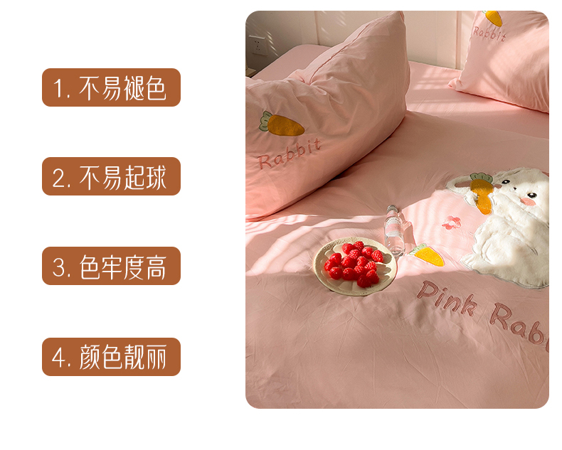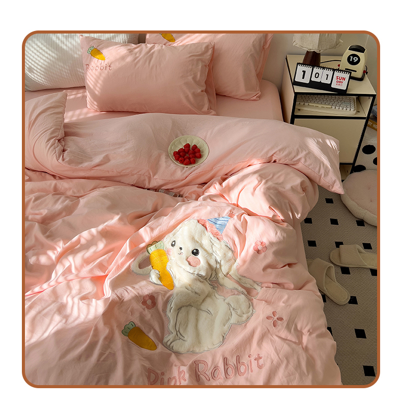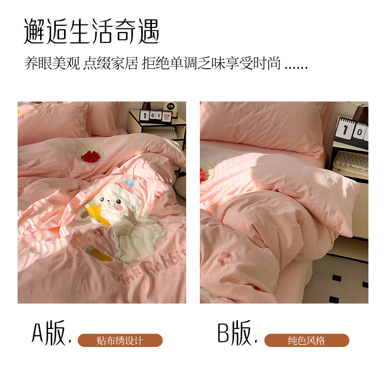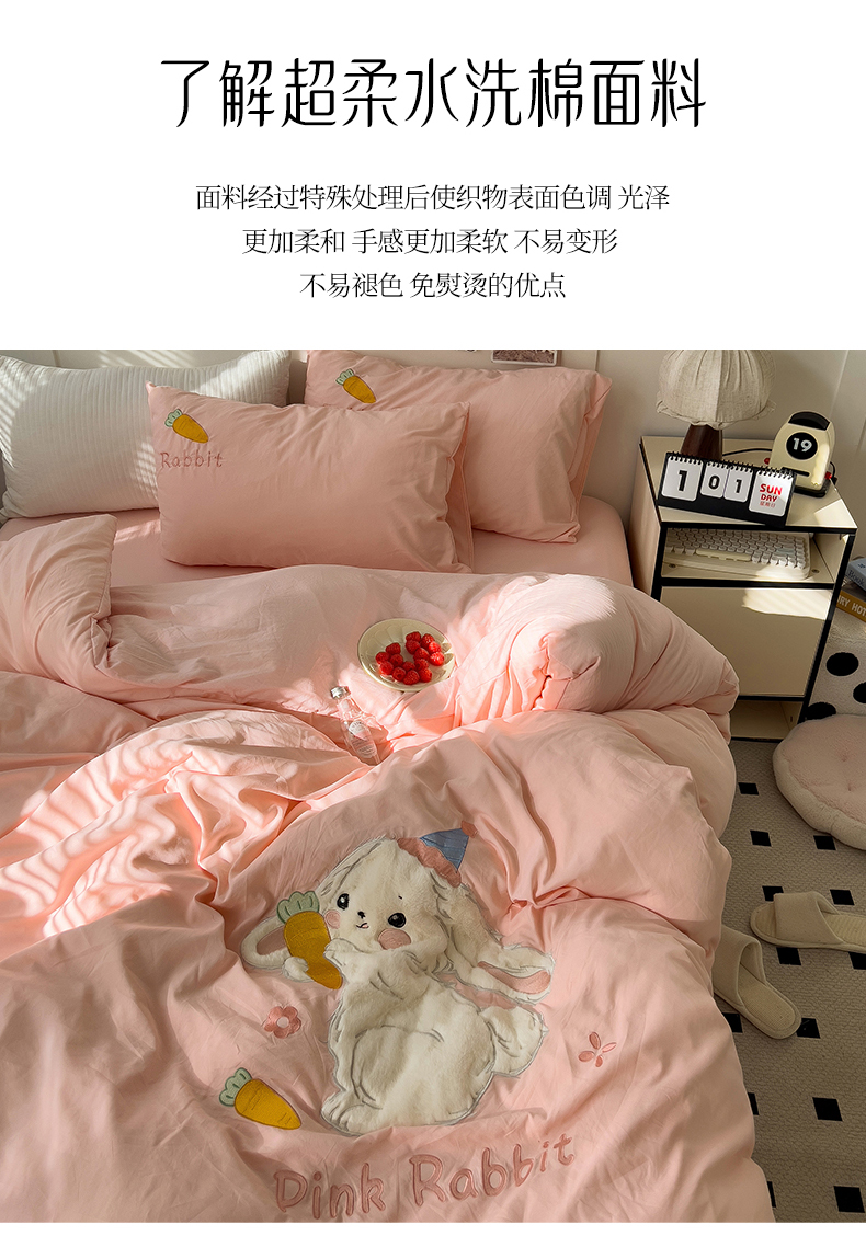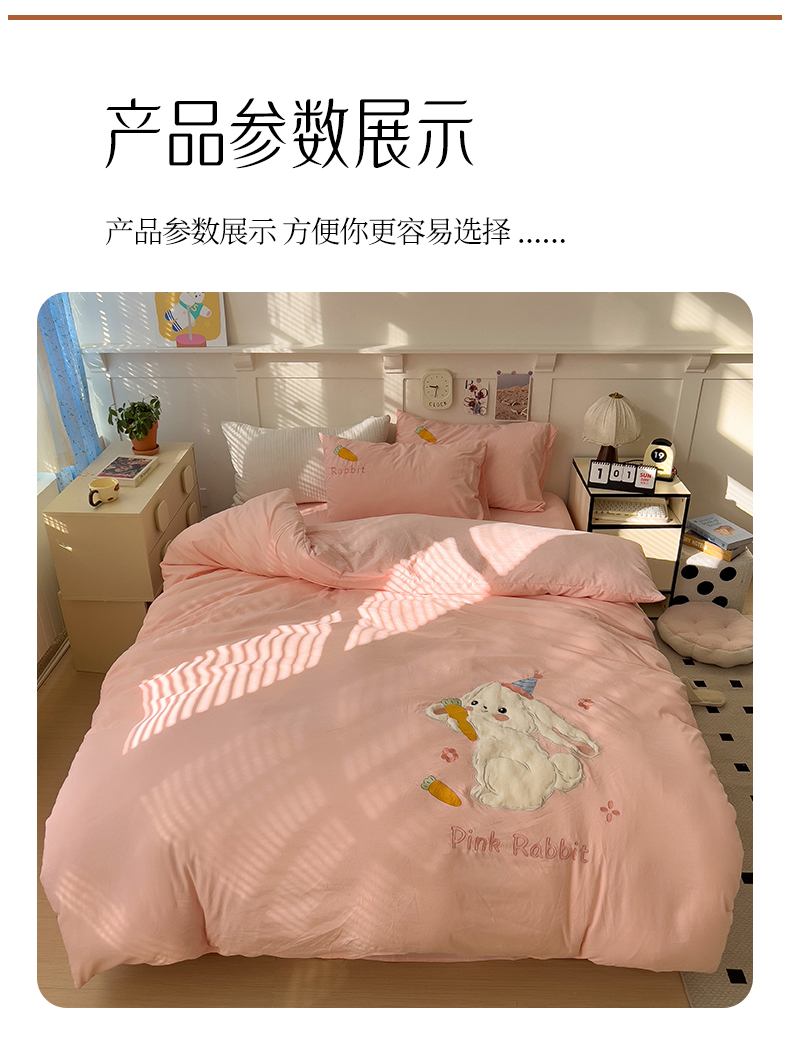 当前位置: 91家纺网 > 商品网购 > 床品套件 > 四件套 > 毛巾绣四件套 > 水墨江南 2025新款超柔水洗棉贴布绣四件套 萝卜兔粉