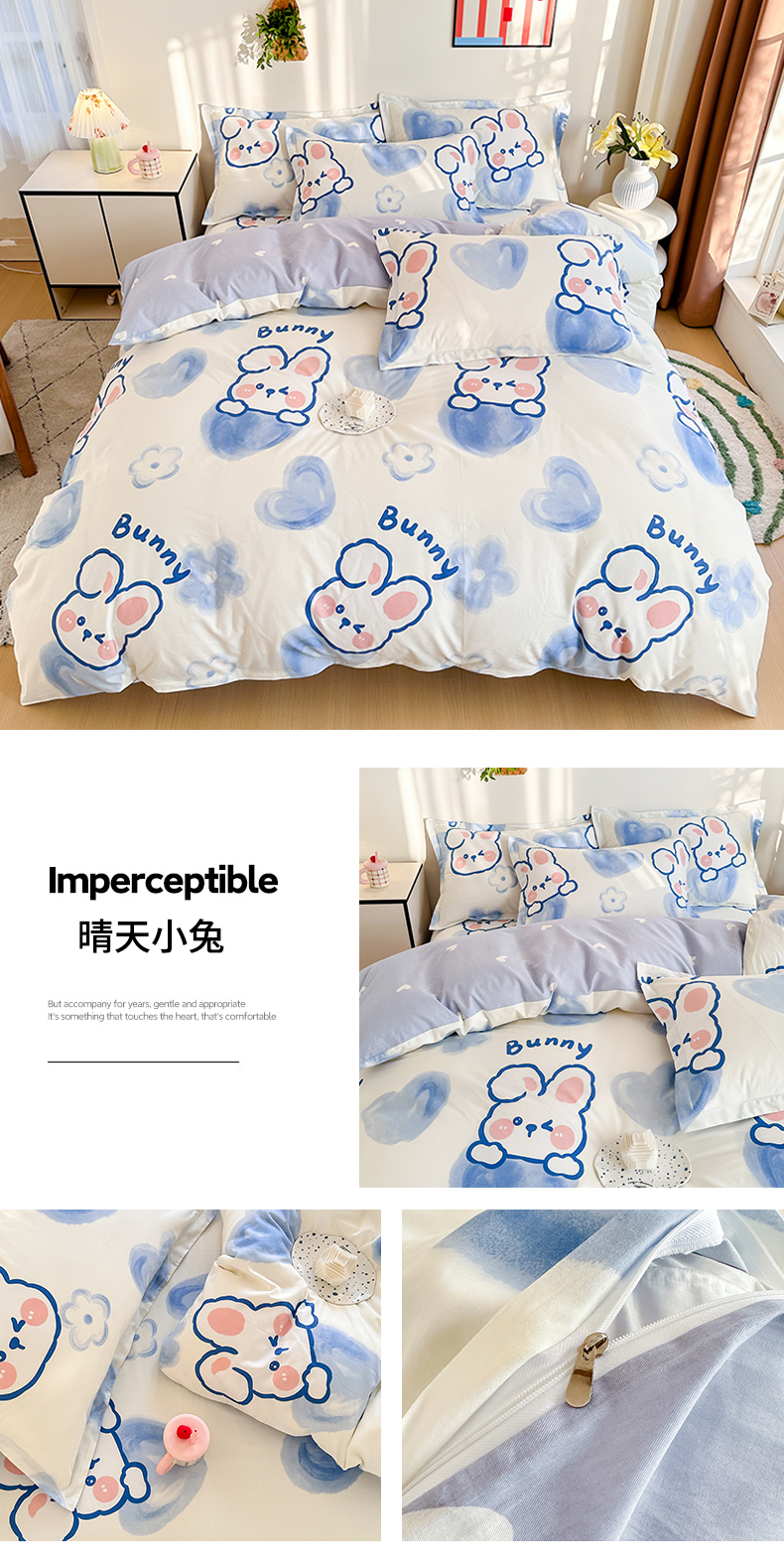 商品名称:棉造家居 2025新款全棉纯棉印花系列学生宿舍单被套 晴天小兔