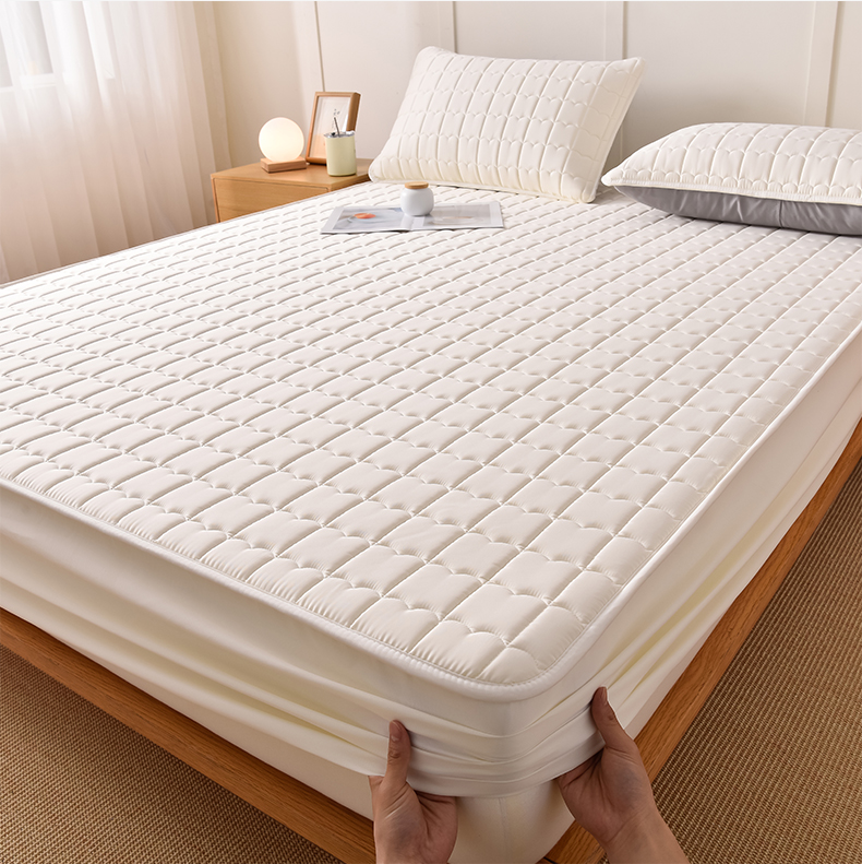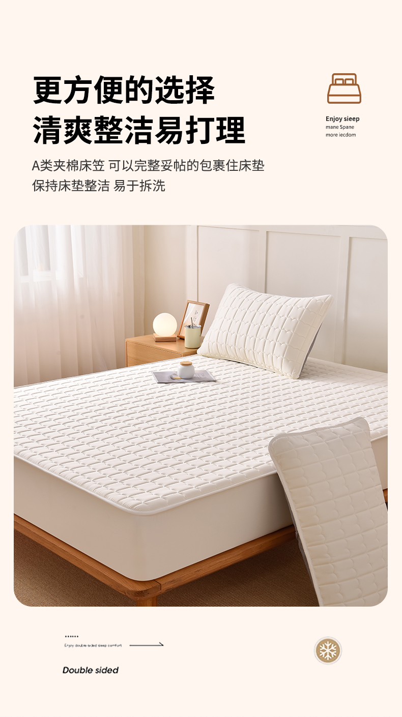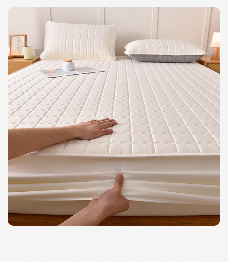 布卢姆床垫 2025新款A类水洗棉大豆夹棉床笠 华夫格-米白