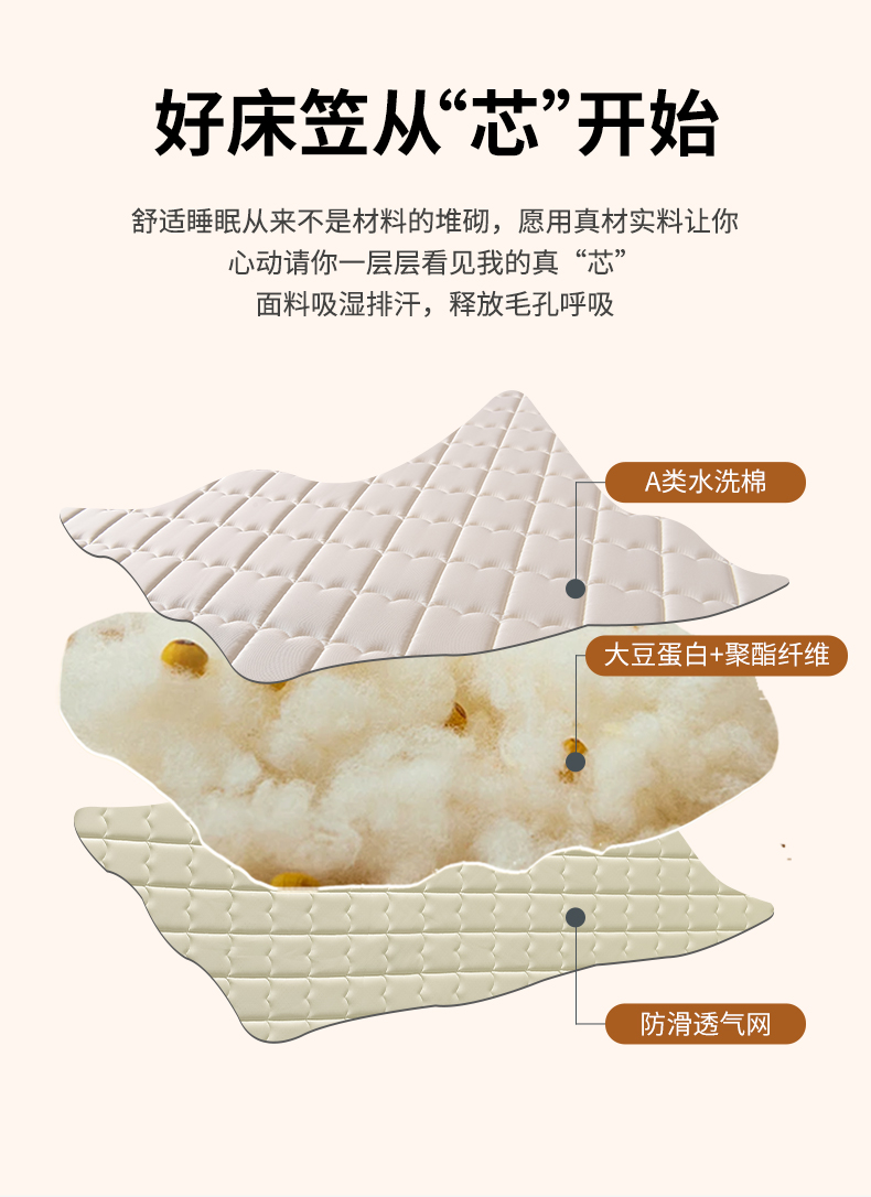 当前位置: 91家纺网 > 商品网购 > 床上用品 > 床笠 > 布卢姆床垫 2025新款A类水洗棉大豆夹棉床笠 华夫格-米白