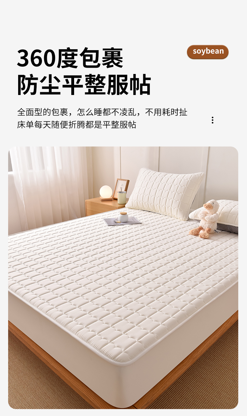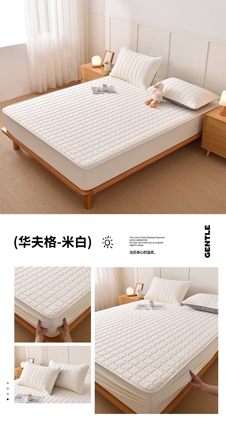 • 91家纺网 家纺一手货源 找家纺 布卢姆床垫 2025新款A类水洗棉大豆夹棉床笠 华夫格-米白