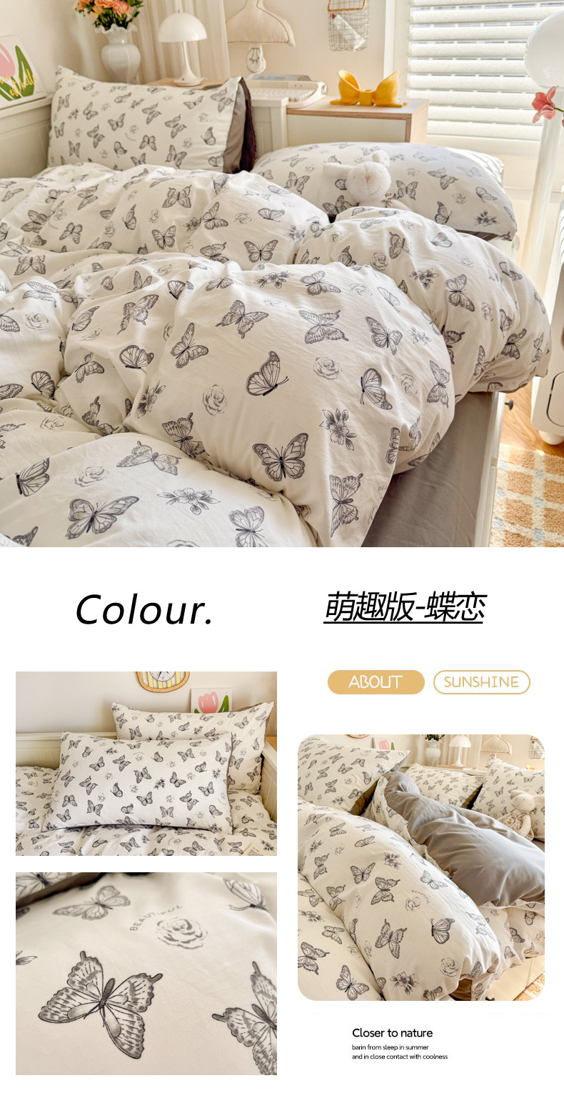 当前位置: 91家纺网 > 商品网购 > 床品套件 > 四件套 > 水洗棉四件套 > 慕澄家纺 2025新款小清新水洗棉印花四件套 萌趣版-蝶恋