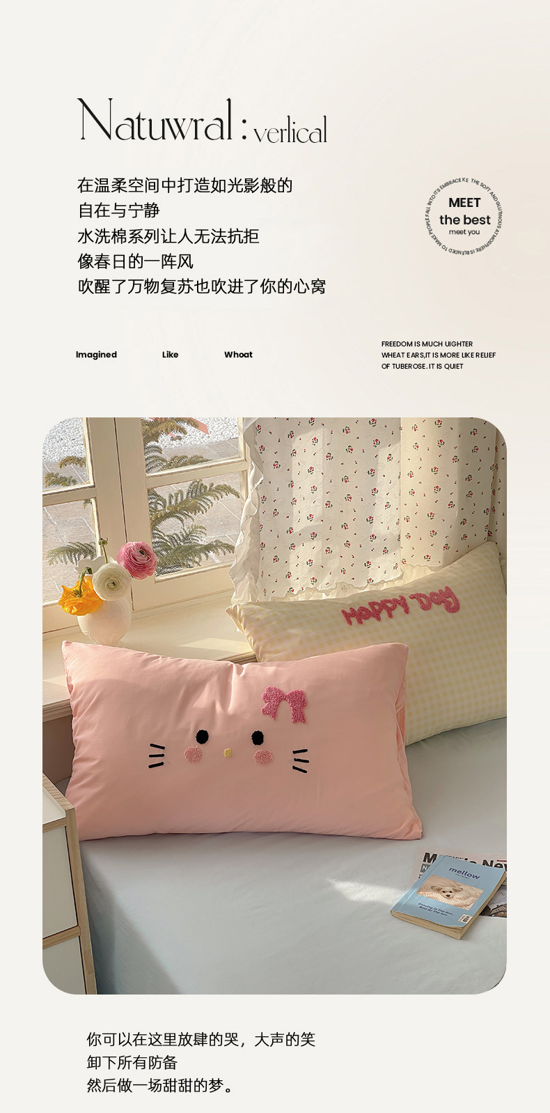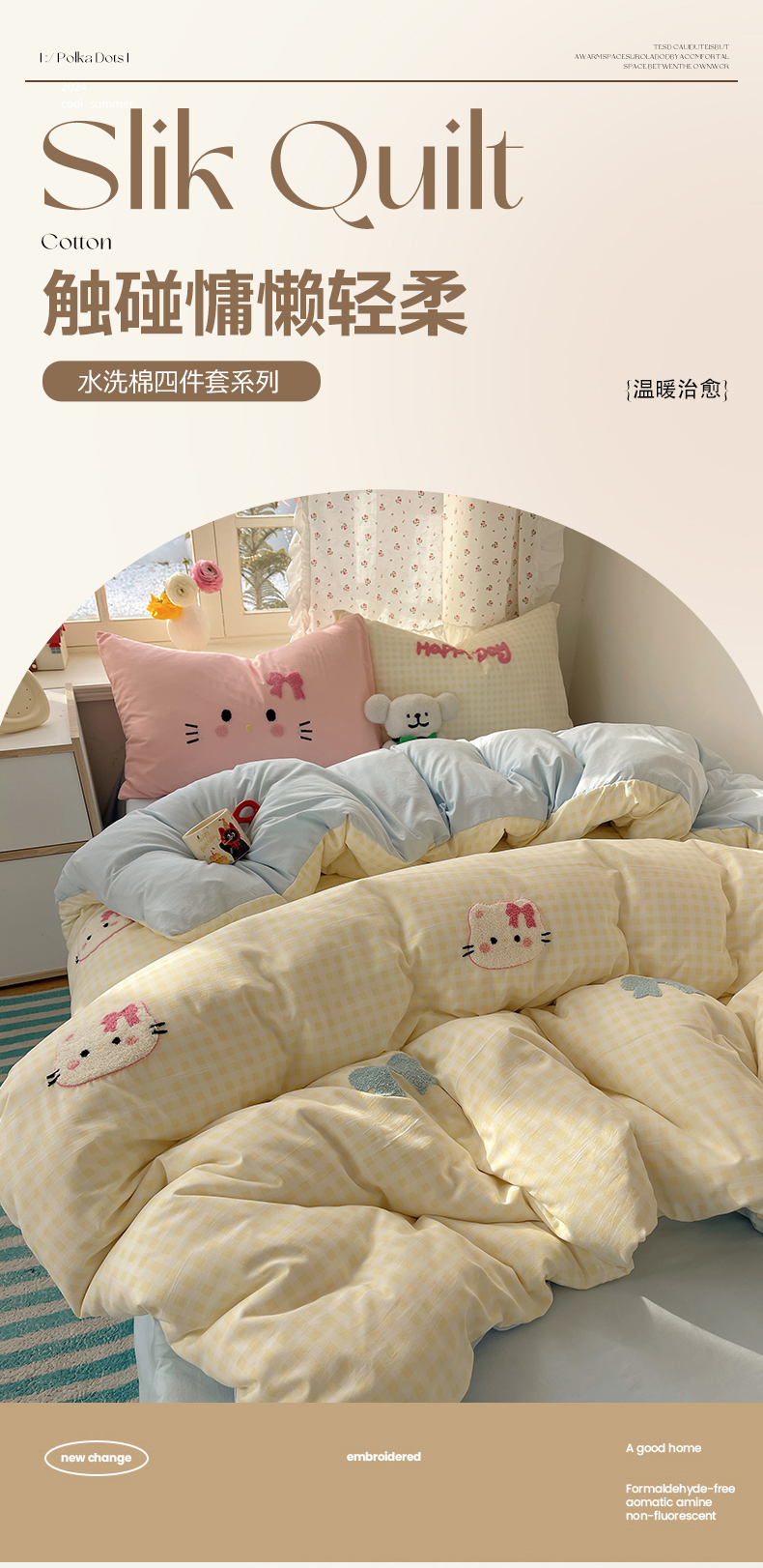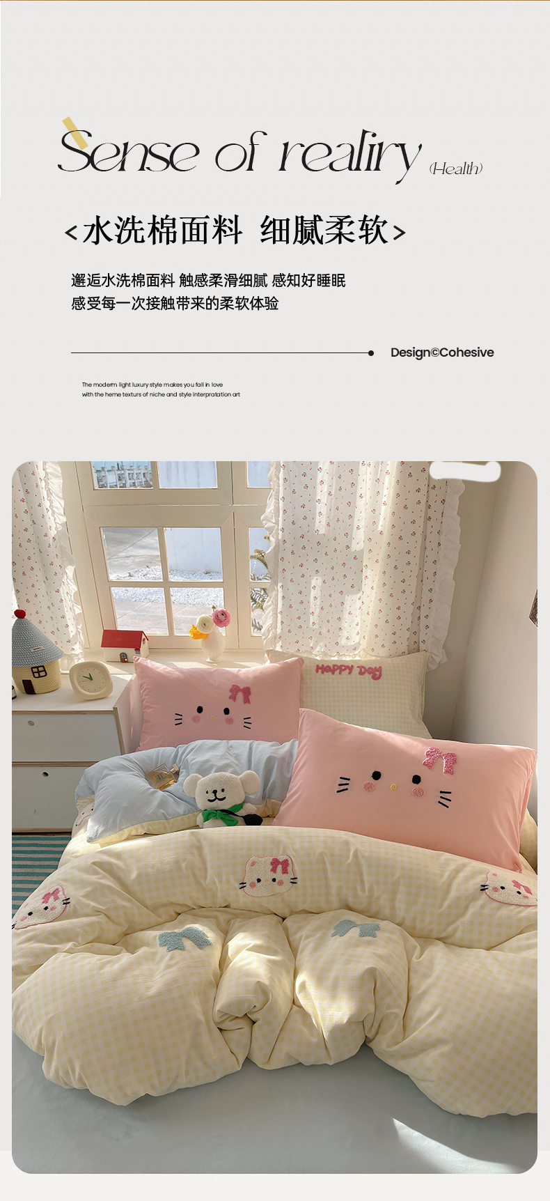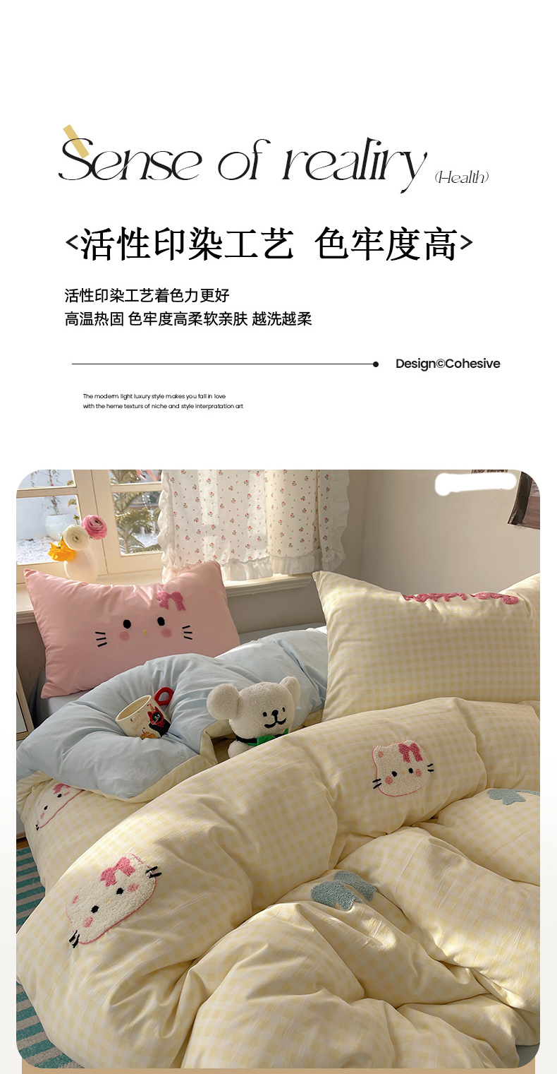 当前位置: 91家纺网 > 商品网购 > 床品套件 > 四件套 > 毛巾绣四件套 > 红嘴企鹅 2025新款水洗棉毛巾绣四件套 黄格蝴蝶结小猫