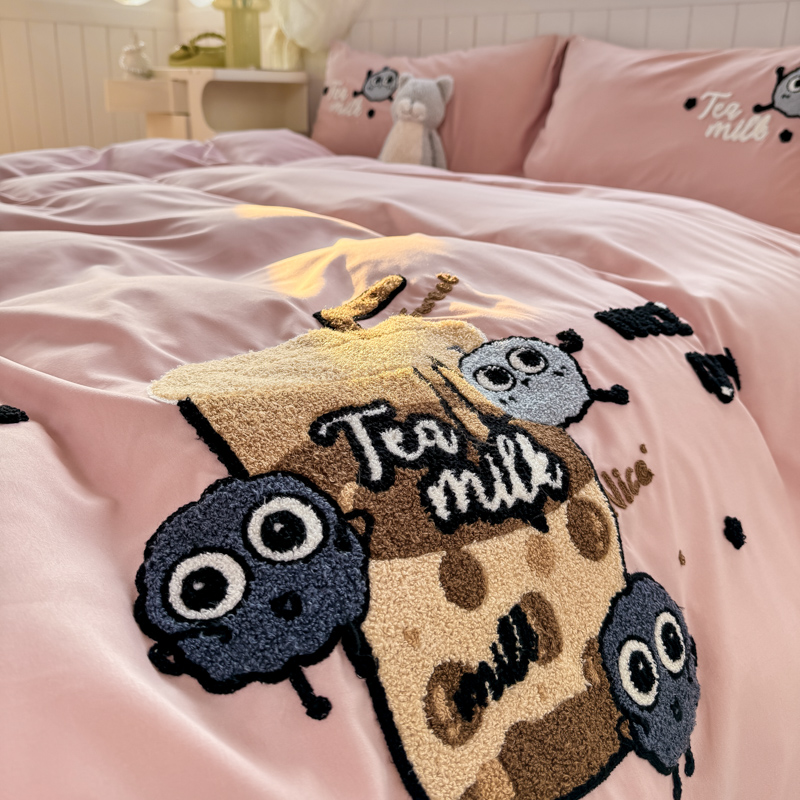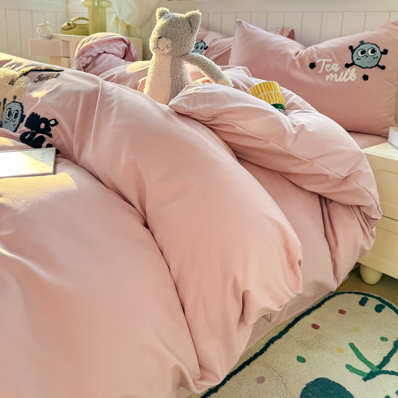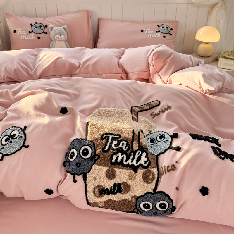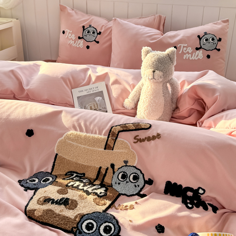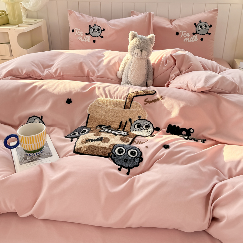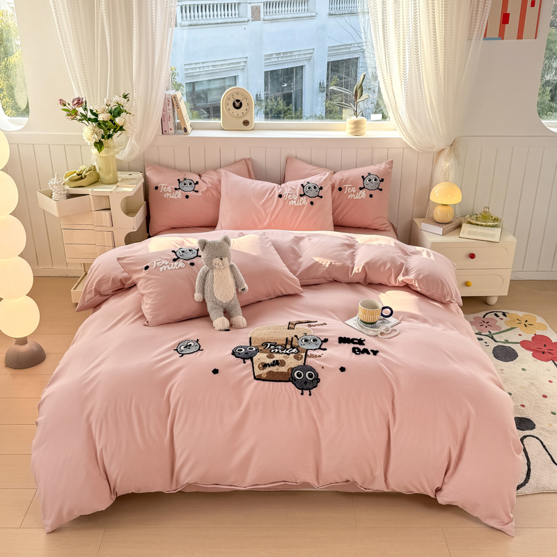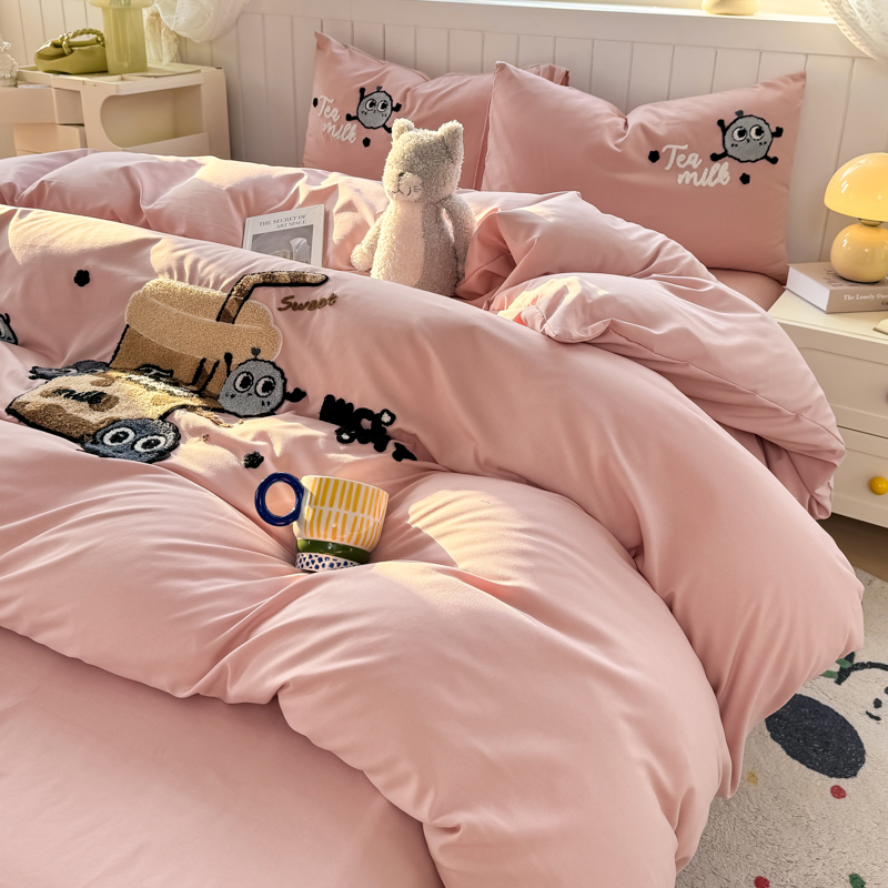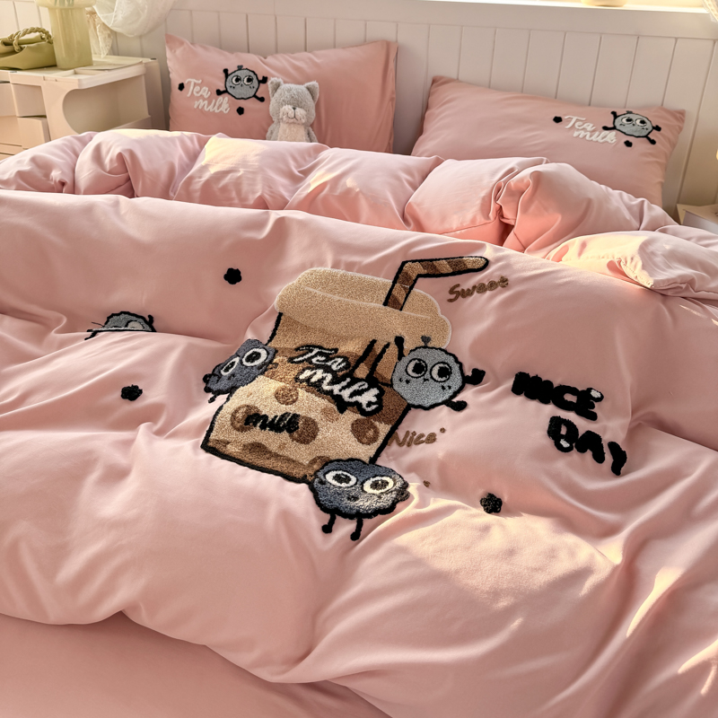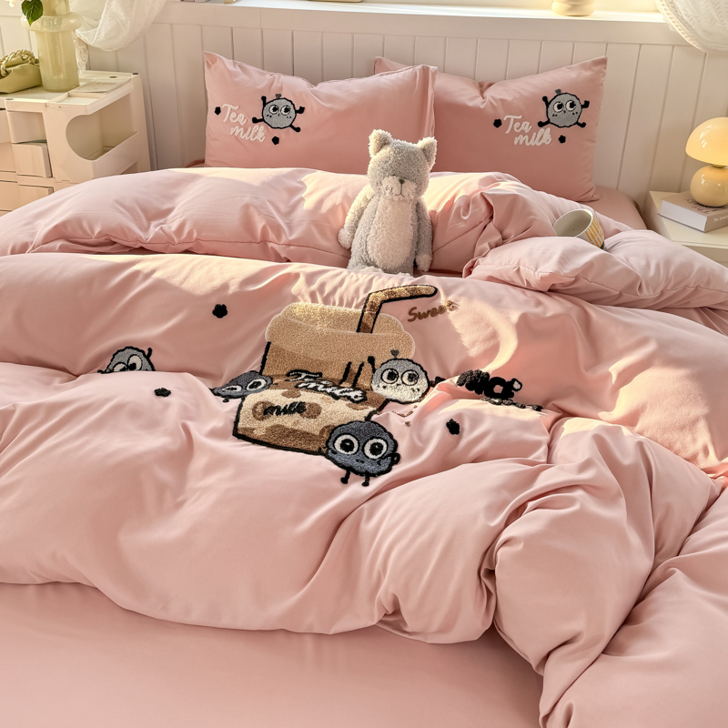 (总)悦织湾 2025新款奶茶毛巾绣四件套水洗棉三件套学生宿舍单人双人床上用品4件套被套