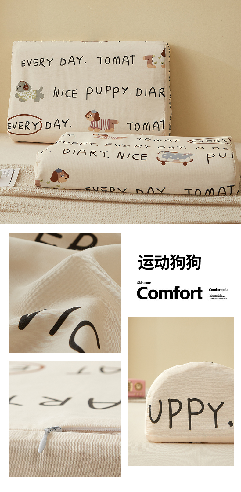 商品名称:翎盈家纺 2025新款纯棉小清新乳胶枕专用枕套 运动狗狗