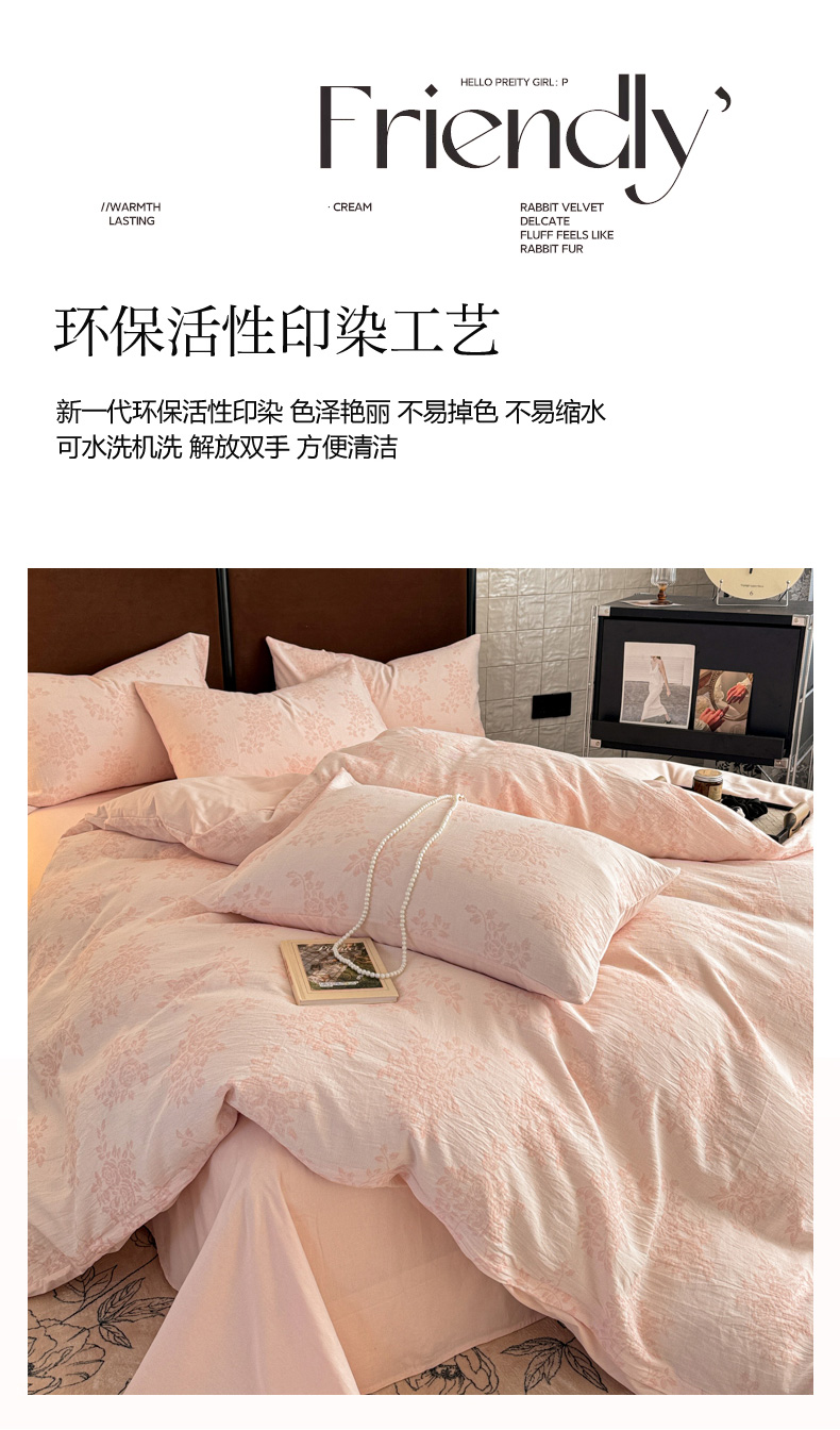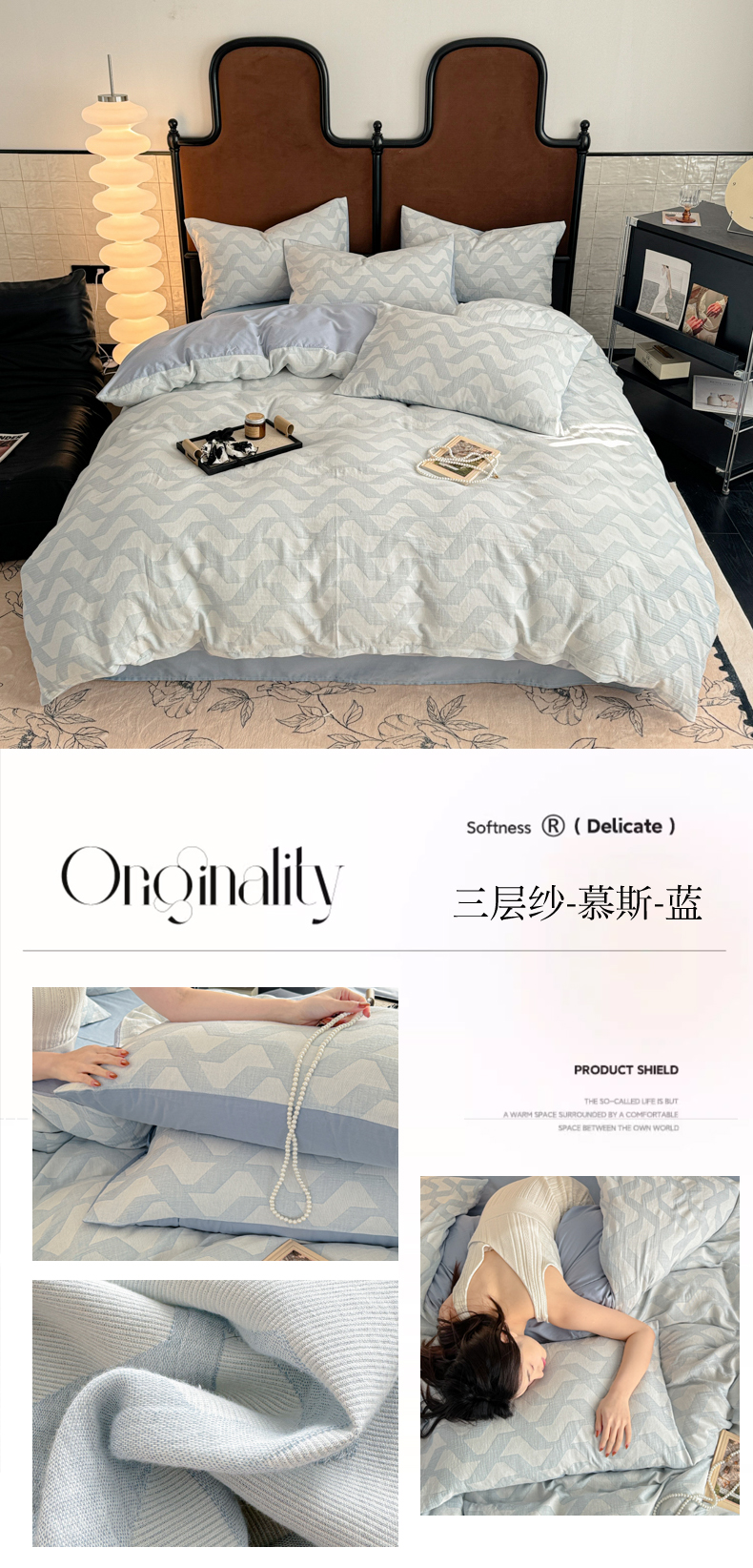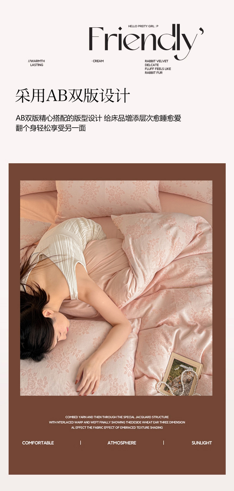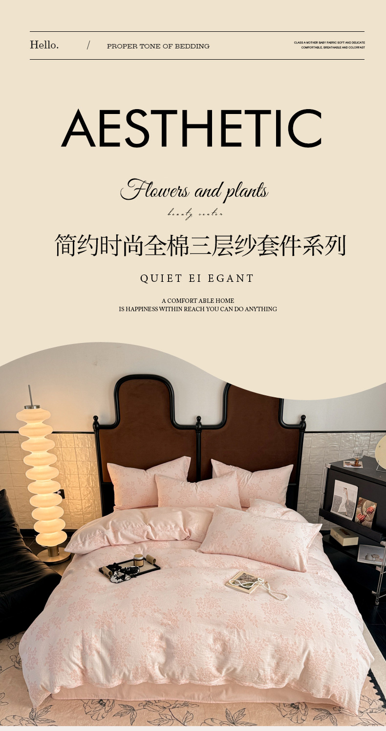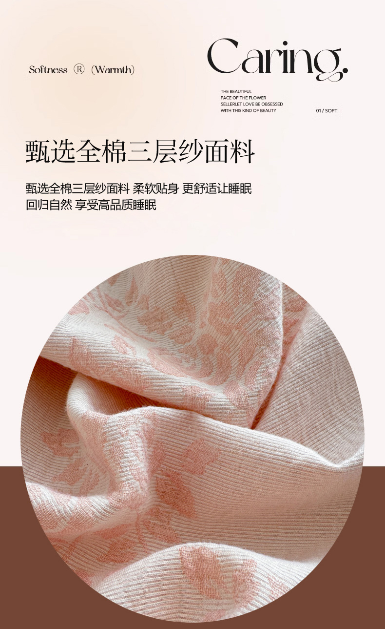 当前位置: 91家纺网 > 商品网购 > 床品套件 > 四件套 > 全棉普通四件套 > 眠博士 2025新款AB版简约时尚A类全棉三层纱系列四件套 三层纱-玫瑰花-粉