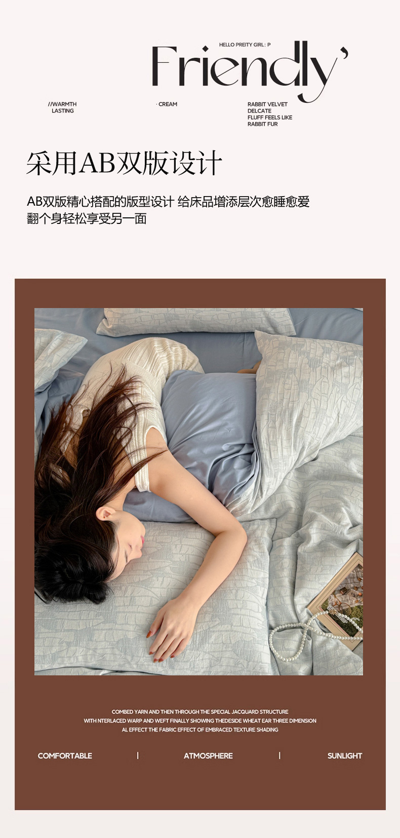 (总)眠博士 2025新款阳离子兔兔绒四件套,兔兔绒阳离子-波纹豆沙,兔兔绒阳离子-波纹暖咖,兔兔绒阳离子-波纹深灰,兔兔绒阳离子-抽条暖咖,兔兔绒阳离子-抽条浅灰,兔兔绒阳离子-抽条雾蓝