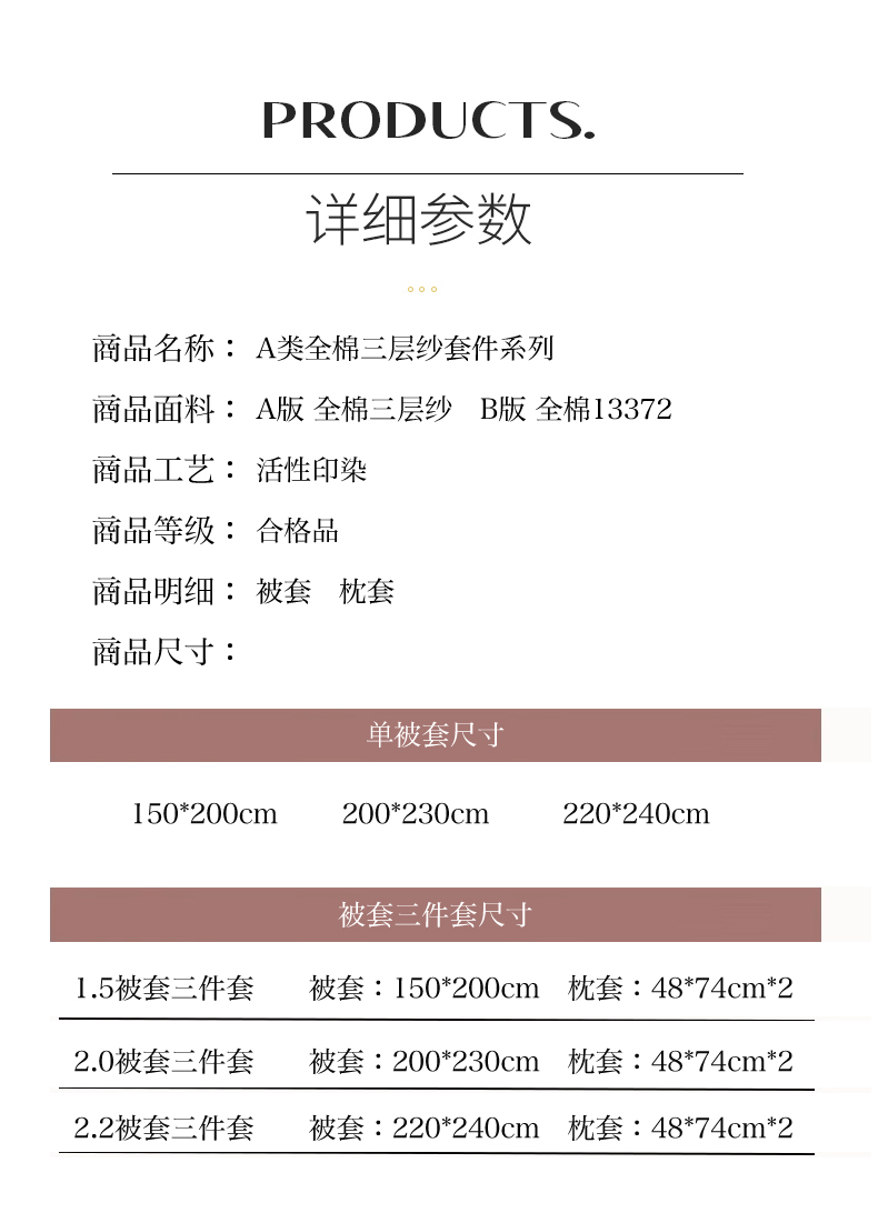 商品名称:(总)眠博士2025新款AB版简约时尚A类全棉三层纱系列单被套
