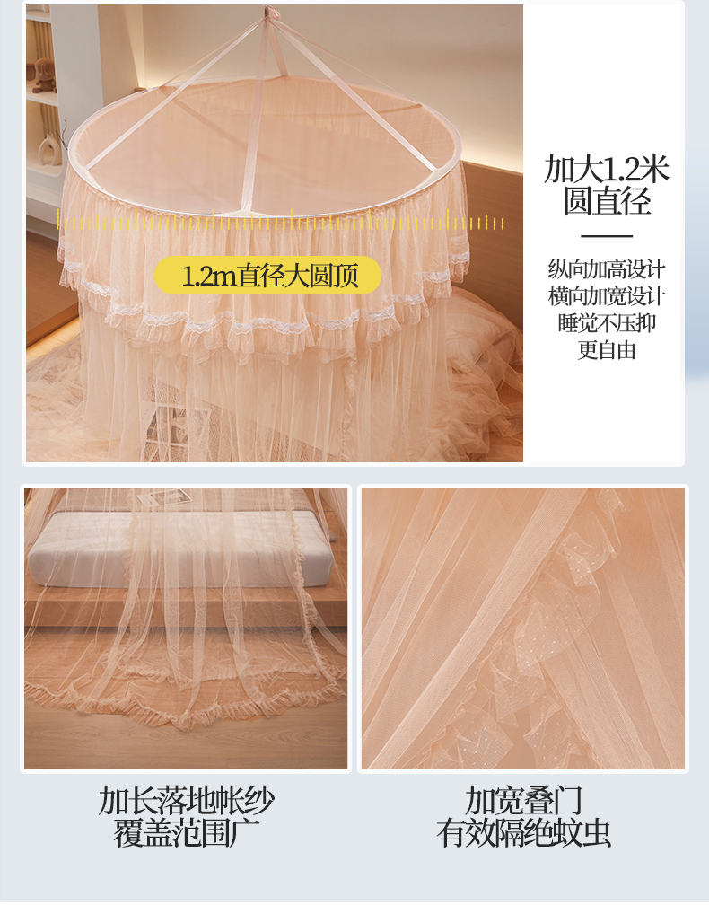 (总)夏彩 2025新款直径加高加密加柔吊顶蚊帐-88621,88621-薄荷绿,88621-浅粉玉,88621-浅蓝灰,88621-雅士白