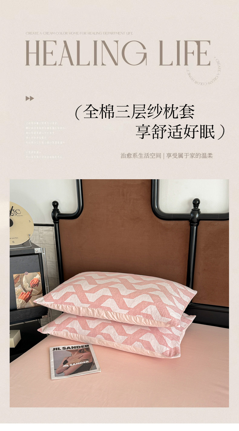 商品名称:眠博士2025新款AB版简约时尚A类全棉三层纱系列单枕套 三层纱-慕斯-粉