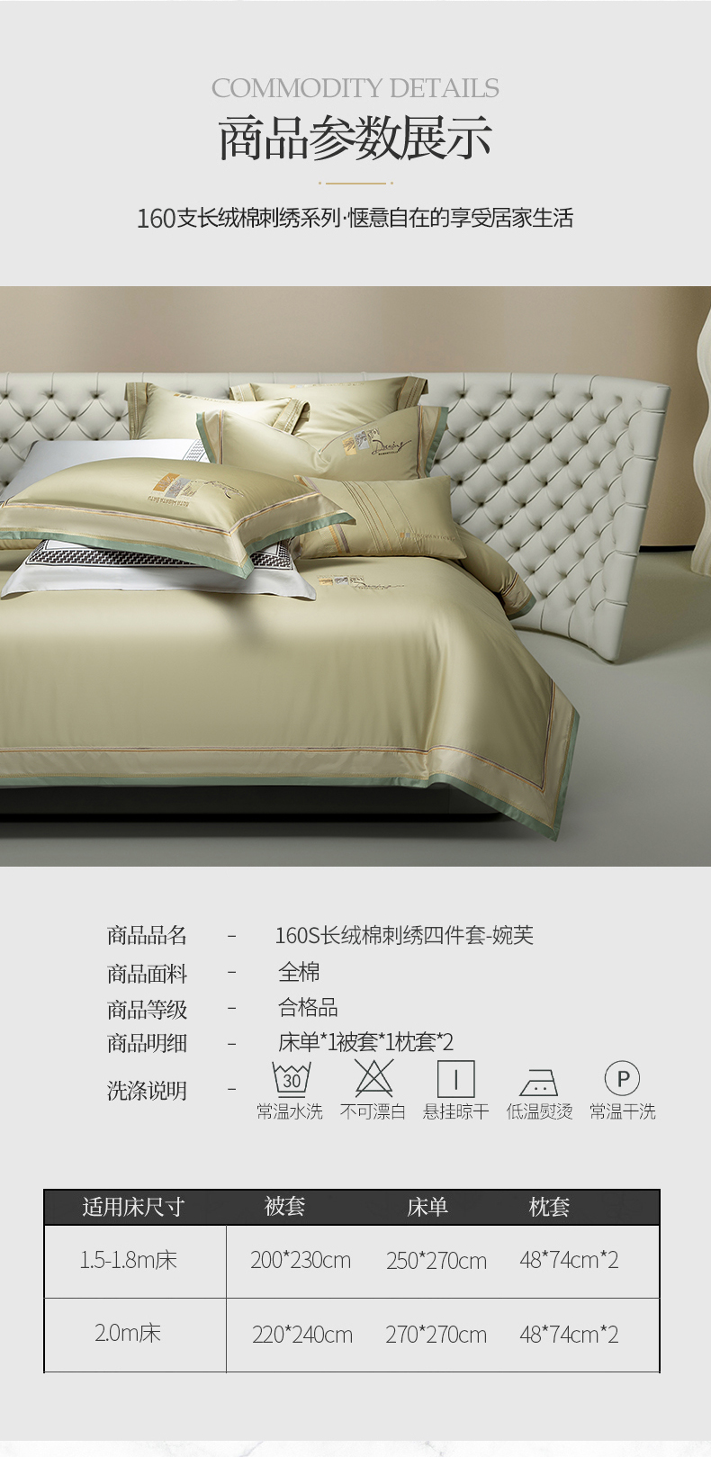 商品名称:(总)高大尚婚庆馆 2025春夏新款 长绒棉高端绣花四件套-婉芙