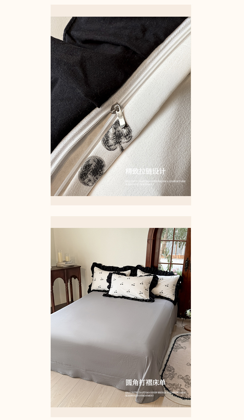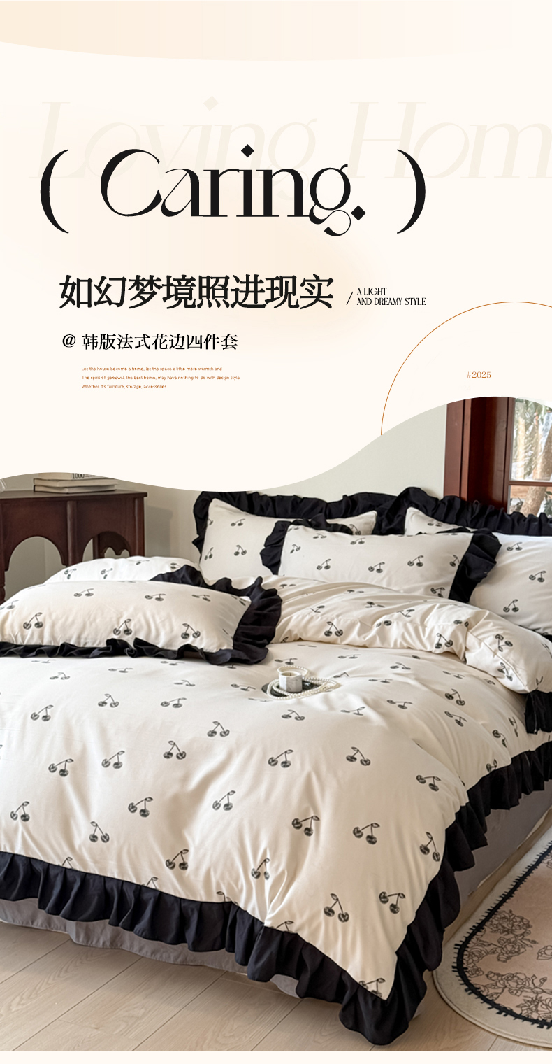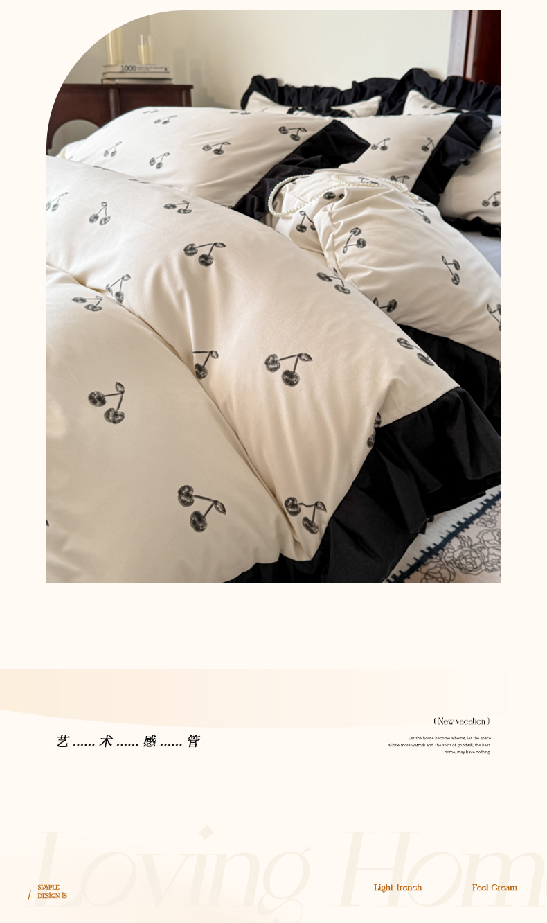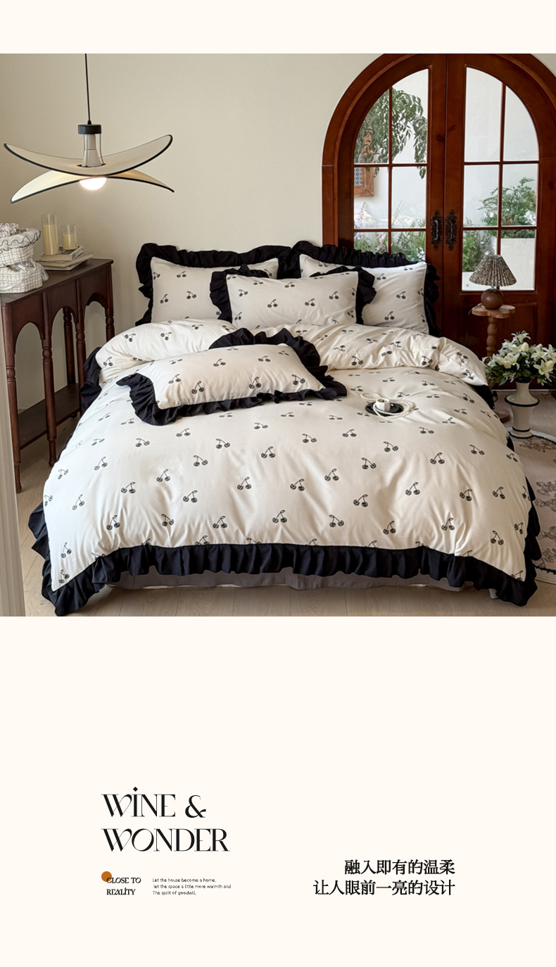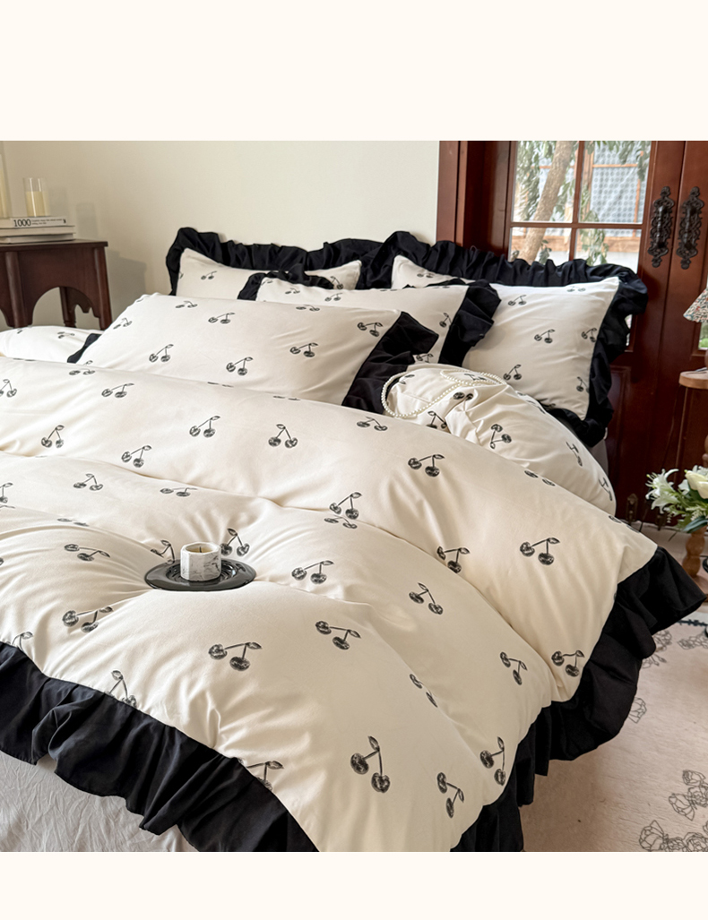 当前位置: 91家纺网 > 商品网购 > 床品套件 > 四件套 > 化纤活性四件套 > 晚爱 2025新款法式花边水洗棉四件套赫本风韩版针织云朵棉三件套 法式风-樱桃