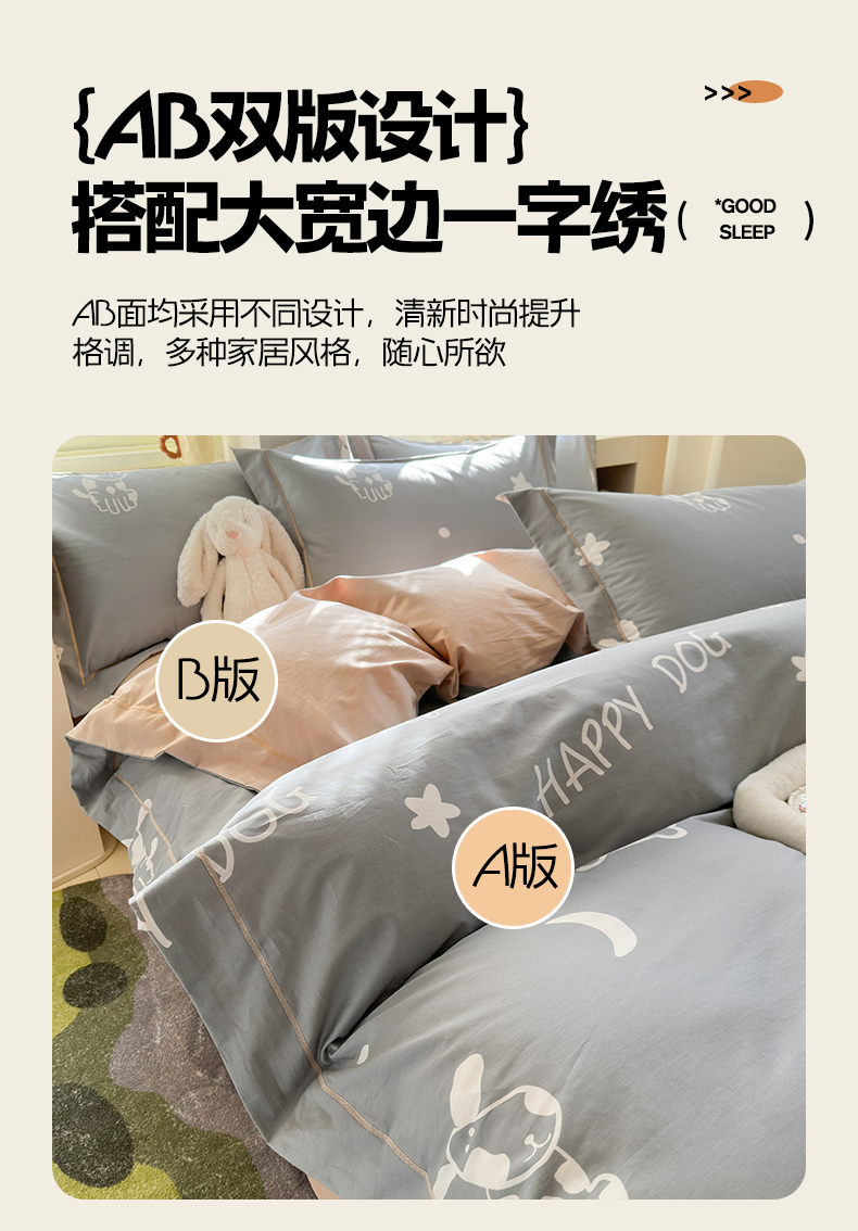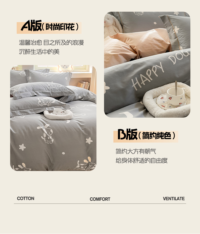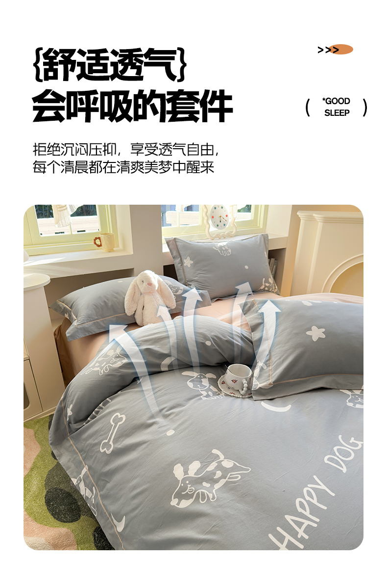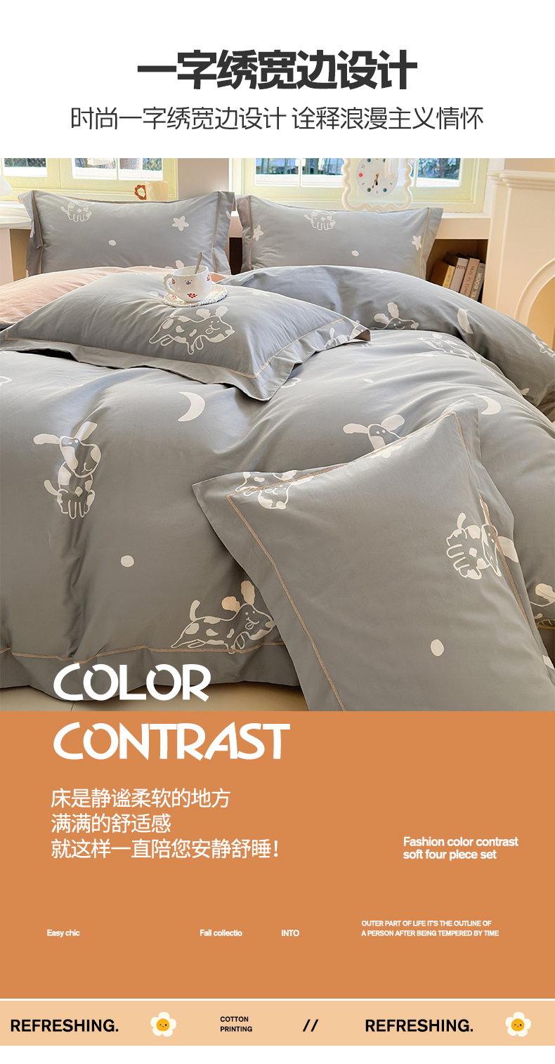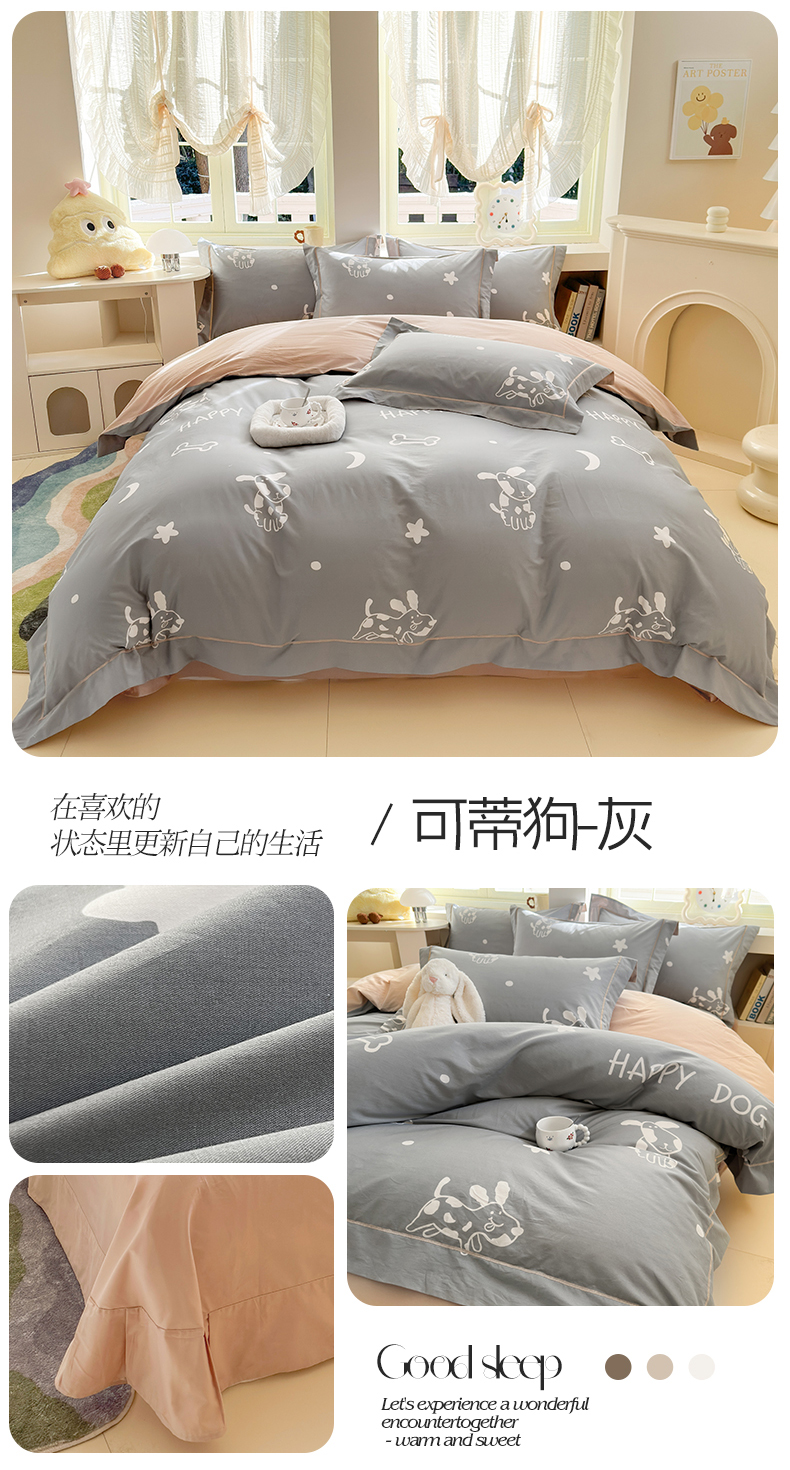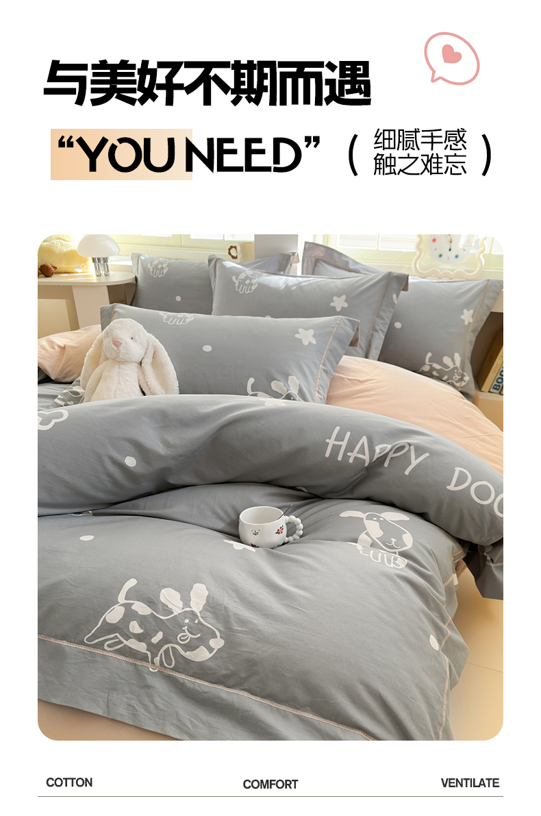 当前位置: 91家纺网 > 商品网购 > 床品套件 > 四件套 > 全棉普通四件套 > 7V 2025新款轻奢大宽边100%纯棉四件套133*76全棉喷气宽幅长绒棉被套床单床笠套件 可蒂狗-灰