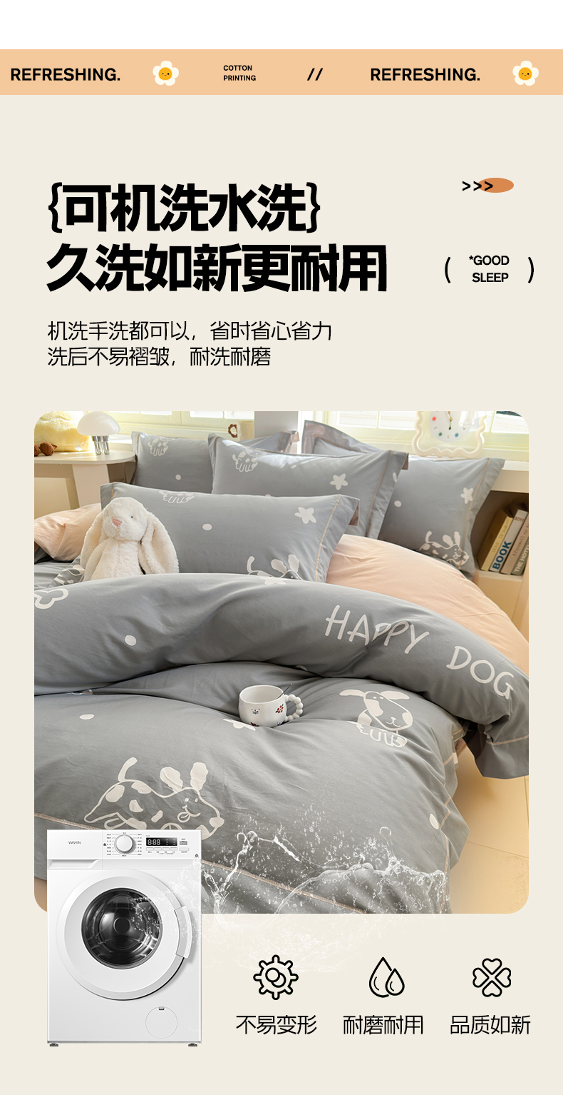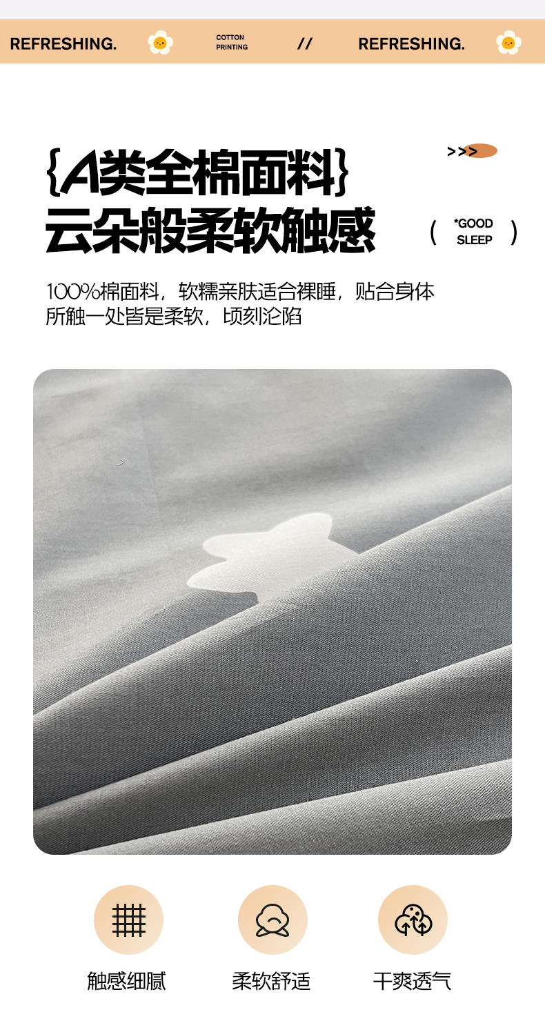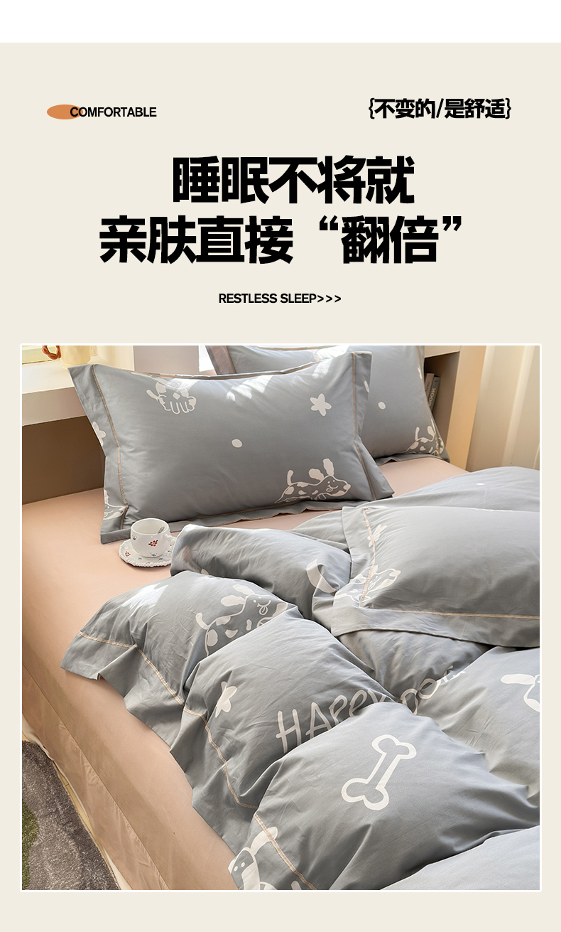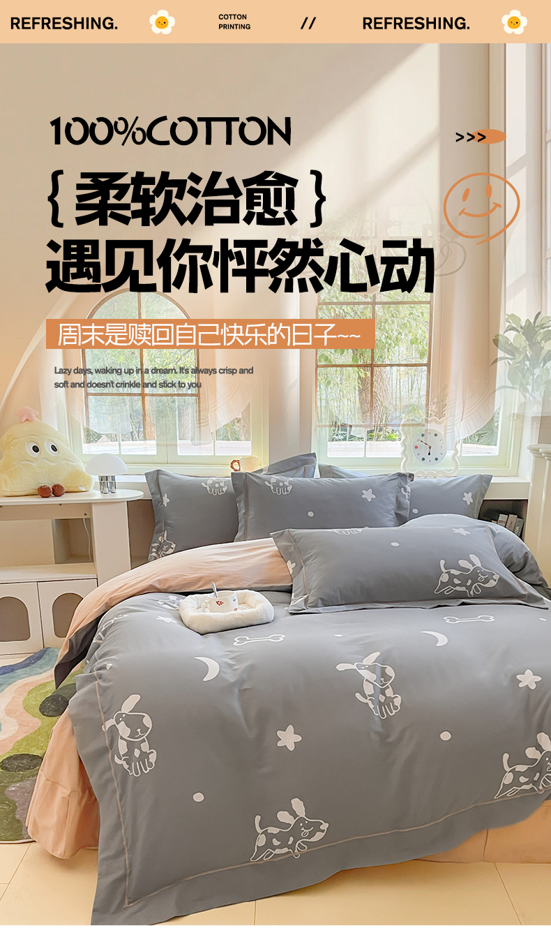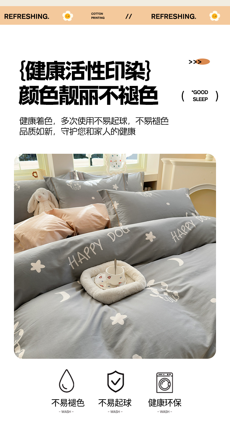 当前位置: 91家纺网 > 商品网购 > 床品套件 > 四件套 > 全棉普通四件套 > 7V 2025新款轻奢大宽边100%纯棉四件套133*76全棉喷气宽幅长绒棉被套床单床笠套件 可蒂狗-灰