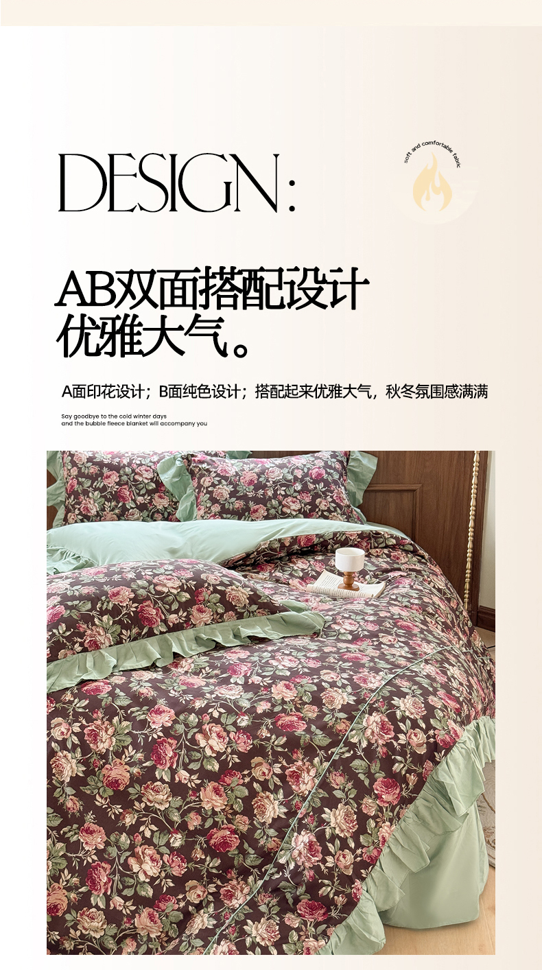(总)胜权家纺 2024新款小香风牛奶绒夹棉床盖四件套-芭莎系列,芭莎-粉,芭莎-绿,芭莎-紫,芭莎-米