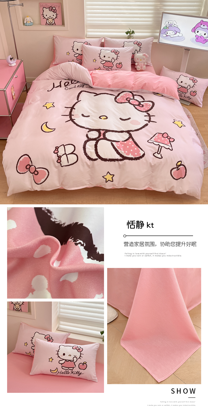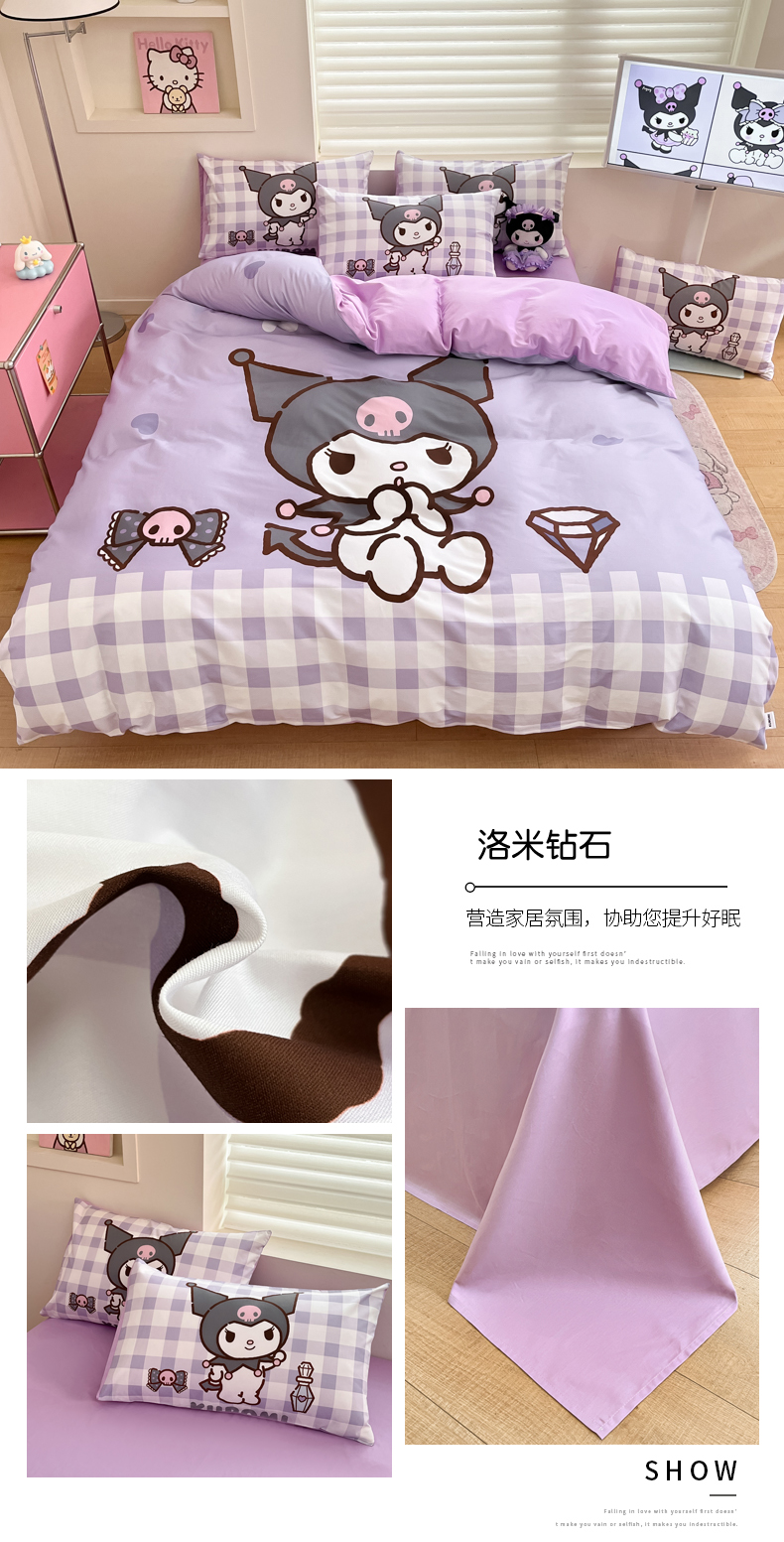 当前位置: 91家纺网 > 商品网购 > 床品套件 > 四件套 > 全棉普通四件套 > 金爱家 2025新款纯棉数码印花大阪三丽鸥四件套 D木马美乐蒂