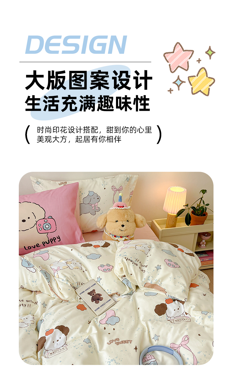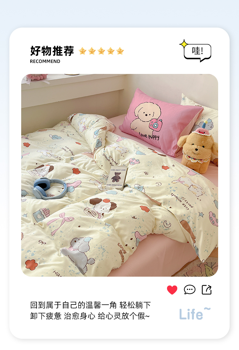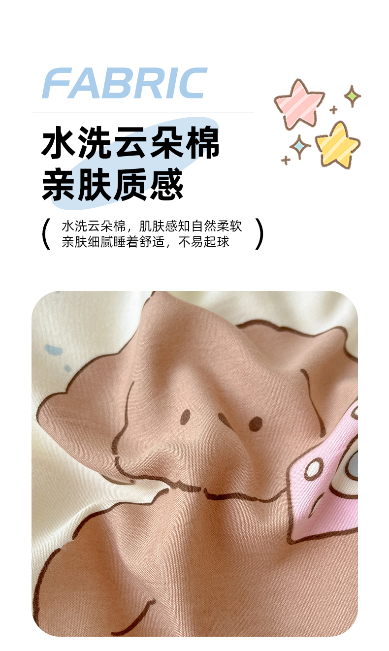 当前位置: 91家纺网 > 商品网购 > 床品套件 > 四件套 > 水洗棉四件套 > 好亿来家纺 2025新款水洗云朵棉大版枕套四件套单品系列-四件套 快乐玩伴
