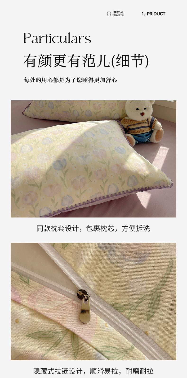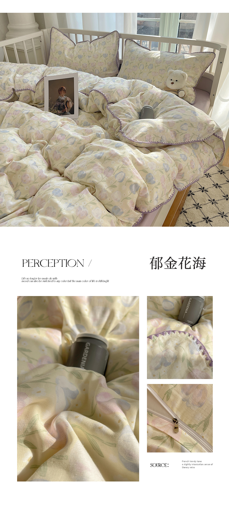 商品名称:三朵 2025新款全棉双层纱三角针四件套 郁金花海