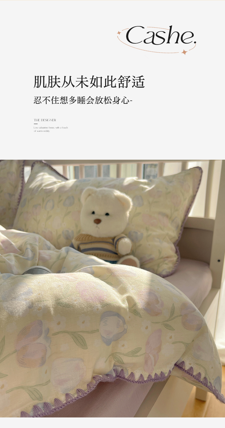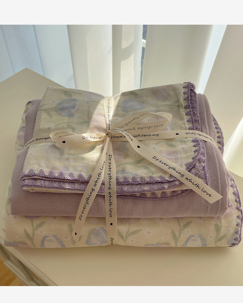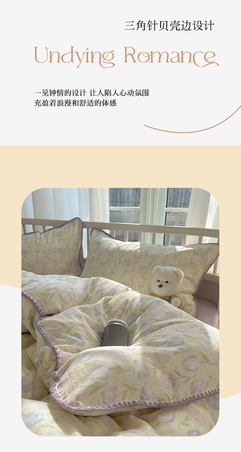 三朵 2025新款全棉双层纱三角针四件套 郁金花海