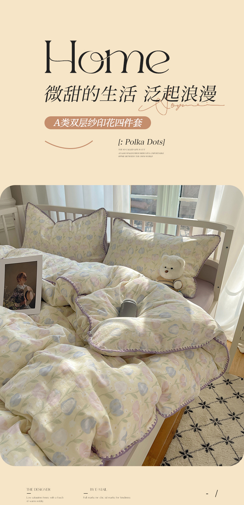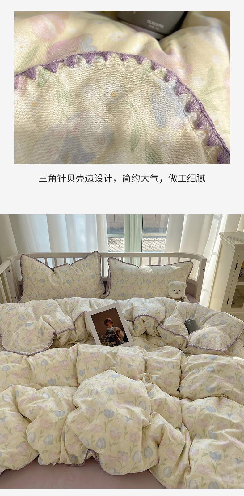 (总)三朵家纺 2026新款ins风全棉少女系花边印花系列四件套,繁花点点,花海迷人-蓝,花海迷人-紫,花意飘香,洛川花海,玫瑰庄园,梦回甜心-黄,梦回甜心-蓝,浅浅花眠,淘气乐园