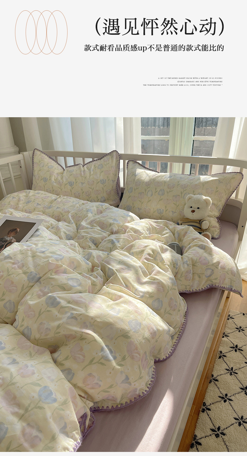(总)三朵家纺 2024新款3D立体浮雕花边保暖加厚四件套,馥郁芳芬,花园小径粉,花园小径黄,绿野仙踪,暖暖花语