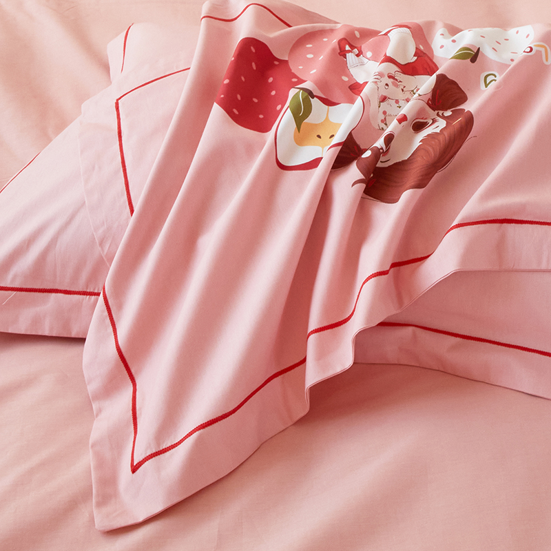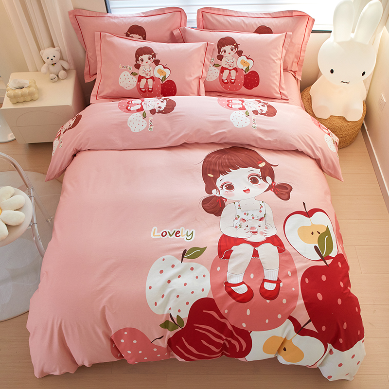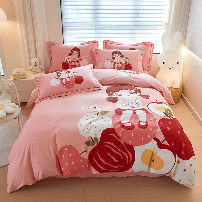 启航家居2025新款春夏直播爆款全棉大版印花四件套 小苹果粉