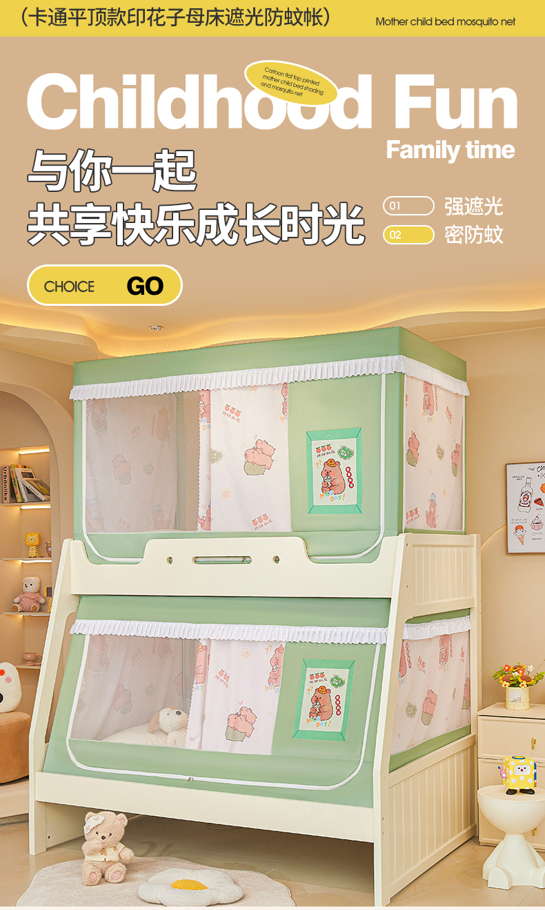 (总)迪凡保罗蚊帐 2025新款2407专版印花遮光帘上下铺子母蚊帐,大吉大梨,海报小熊,花开富贵,花园小兔,恐龙当家,清新柠檬,小奶狗,星星熊,郁金香小兔,长耳兔,抹茶绿,天蓝色,驼色,樱花粉