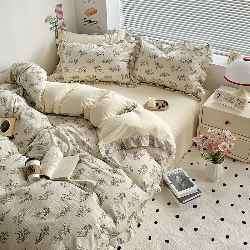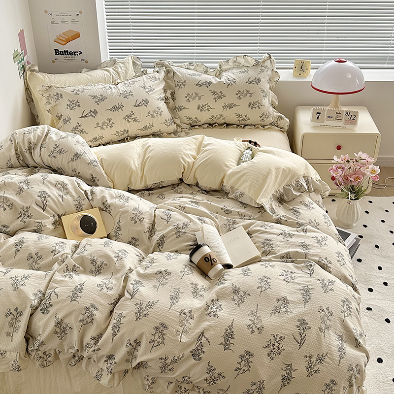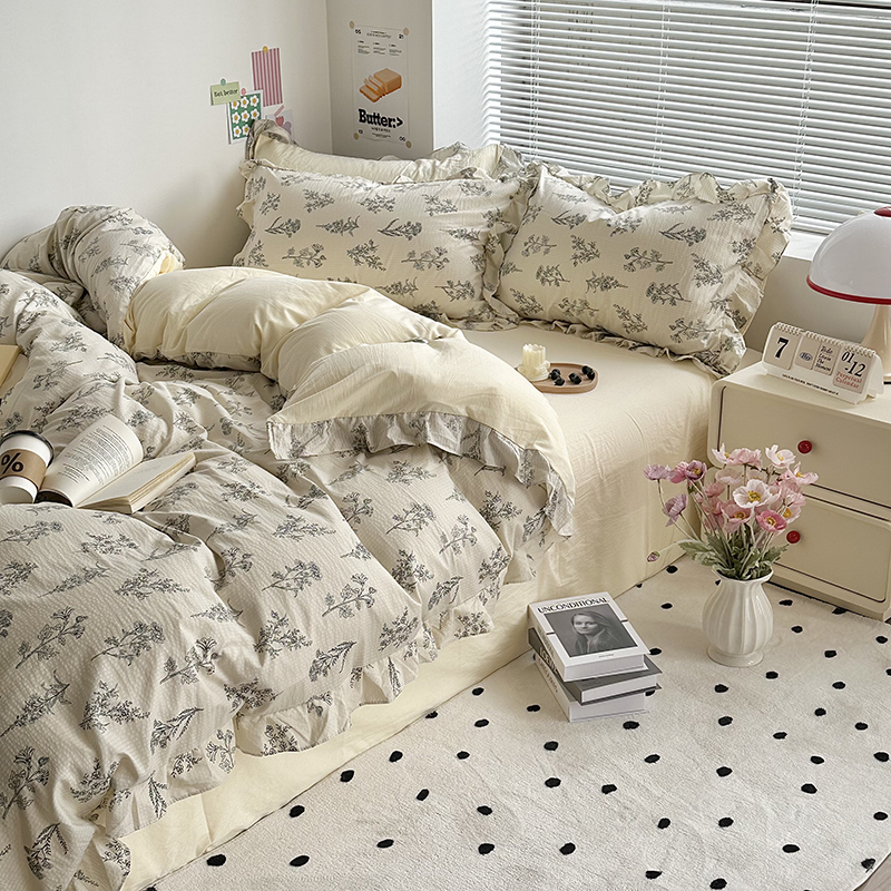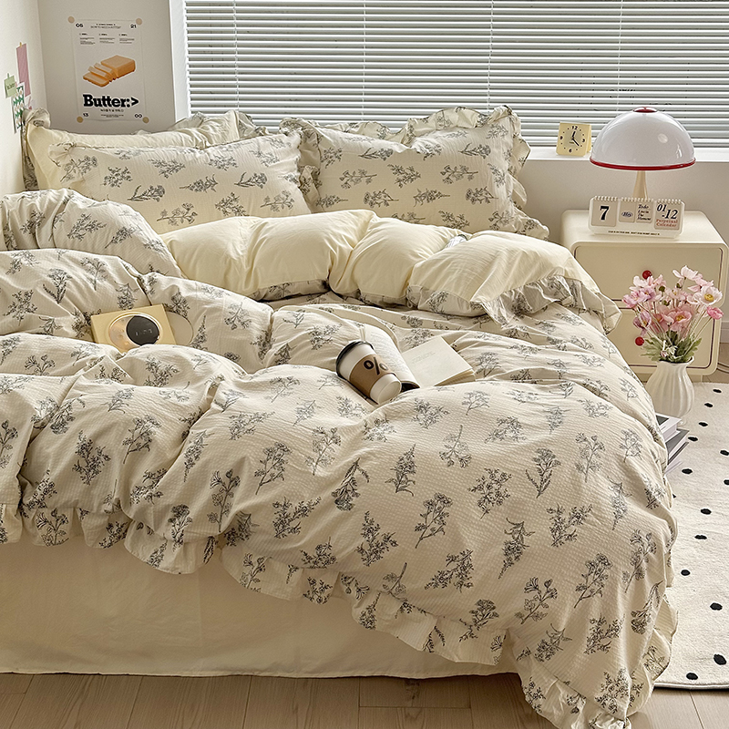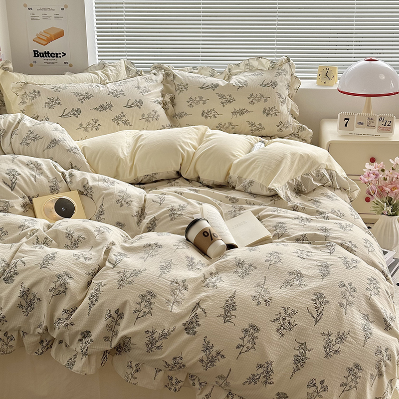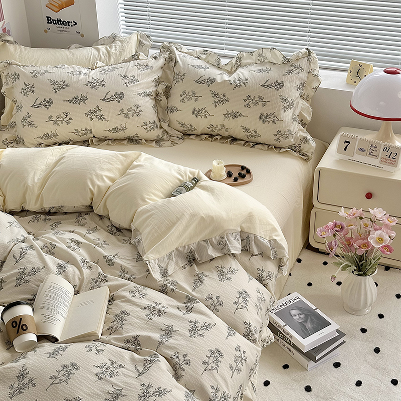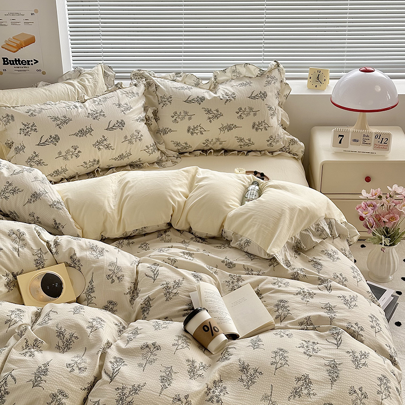 当前位置: 91家纺网 > 商品网购 > 床品套件 > 四件套 > 全棉普通四件套 > 希丞家居 2025新款花卉泡泡纱花边四件套 夏瑾