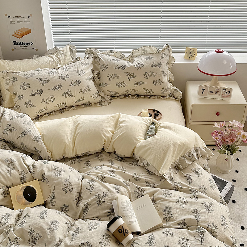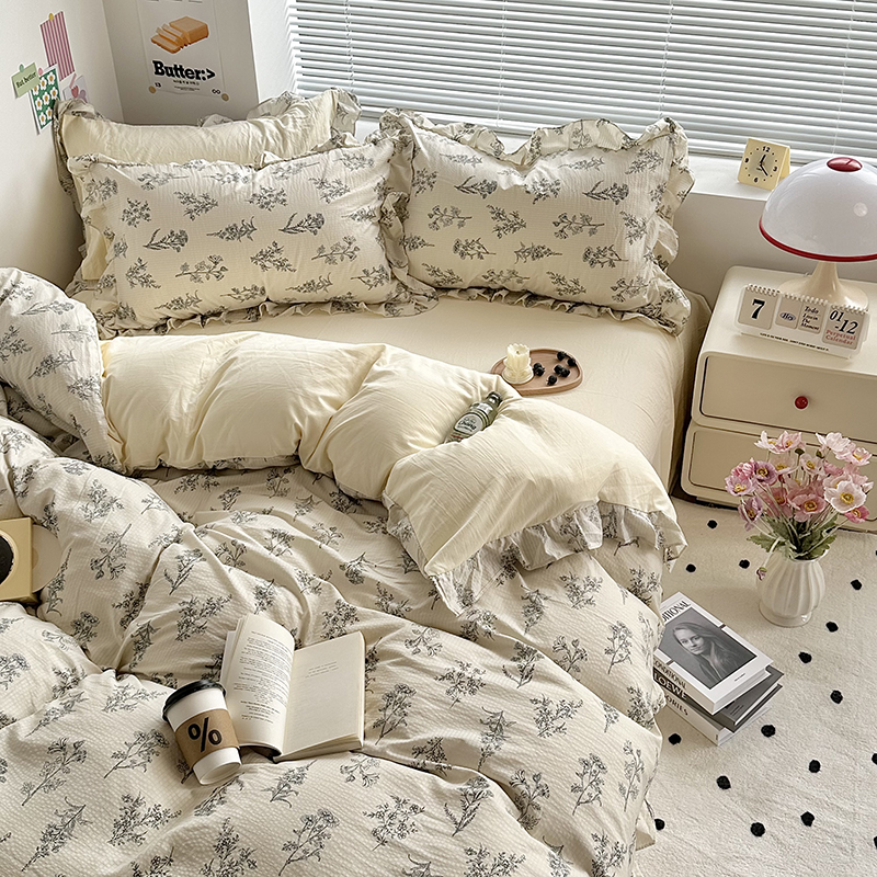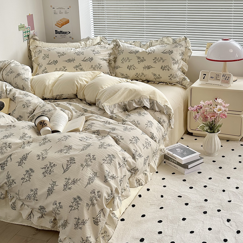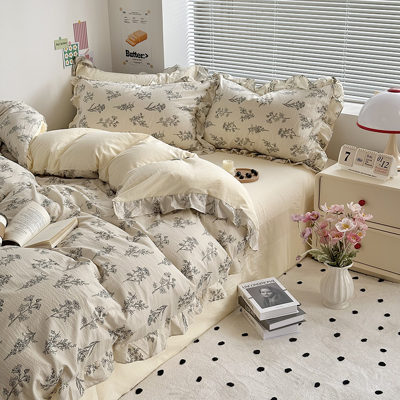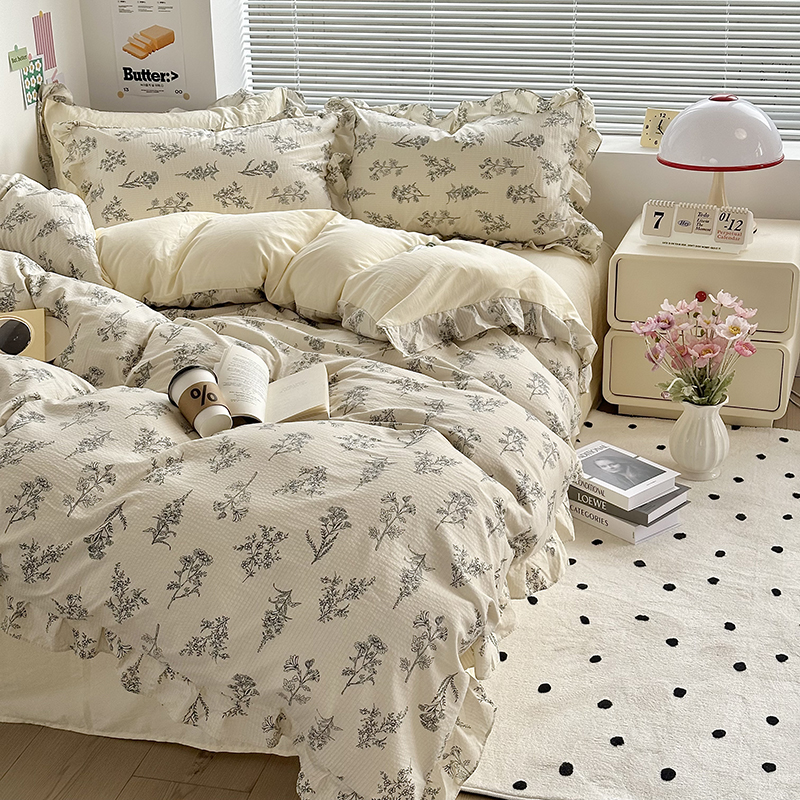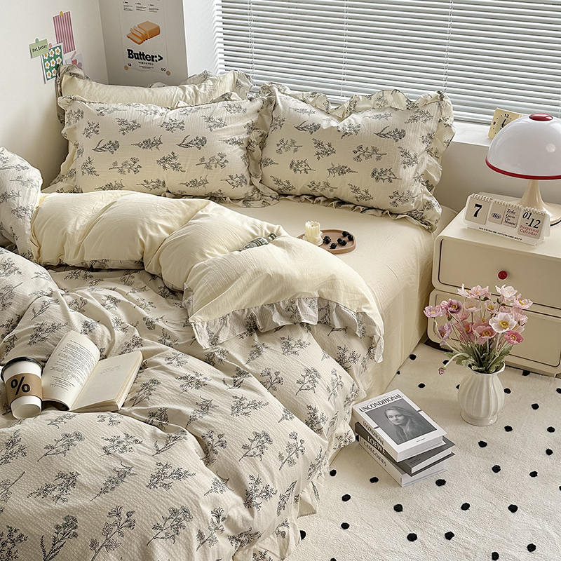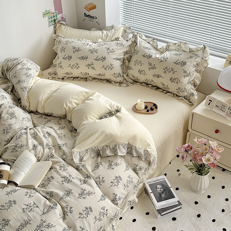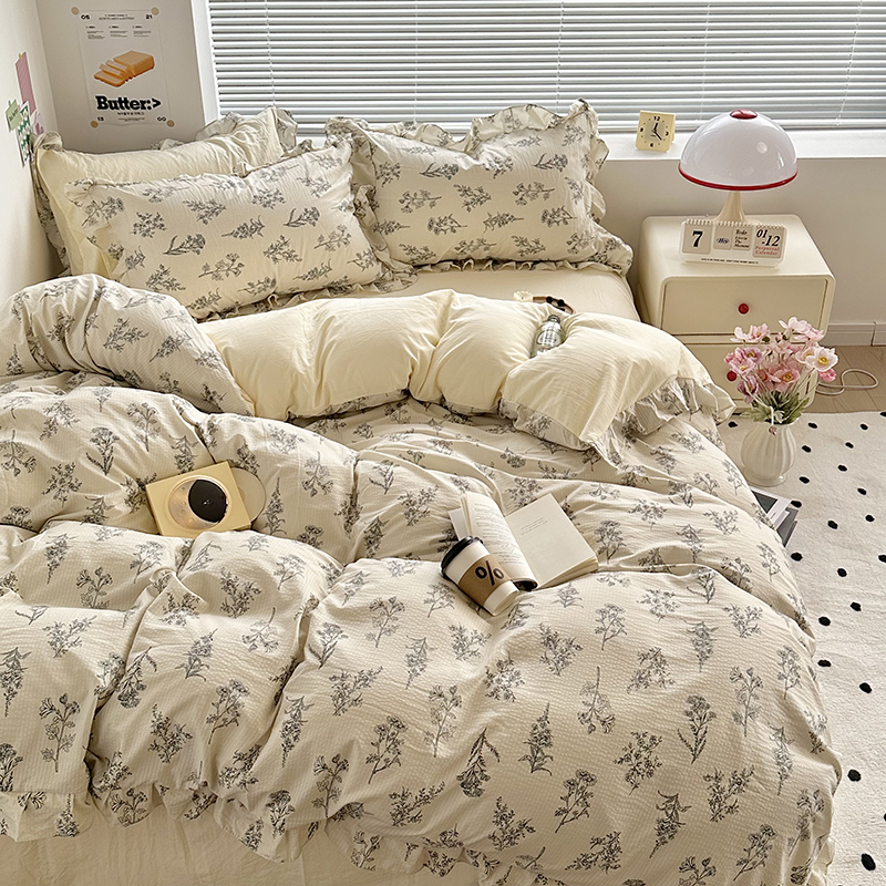 当前位置: 91家纺网 > 商品网购 > 床品套件 > 四件套 > 全棉普通四件套 > 希丞家居 2025新款花卉泡泡纱花边四件套 夏瑾