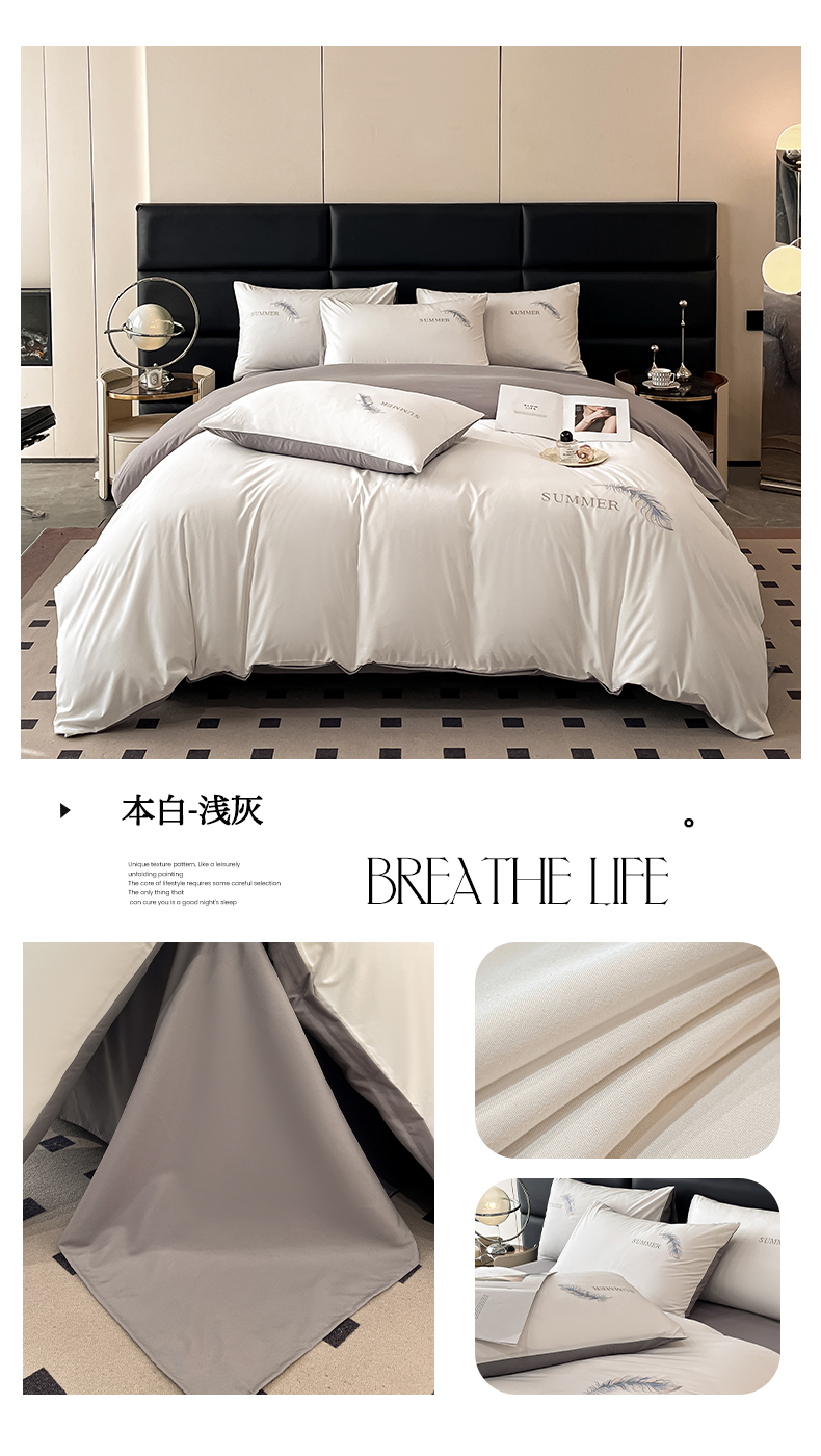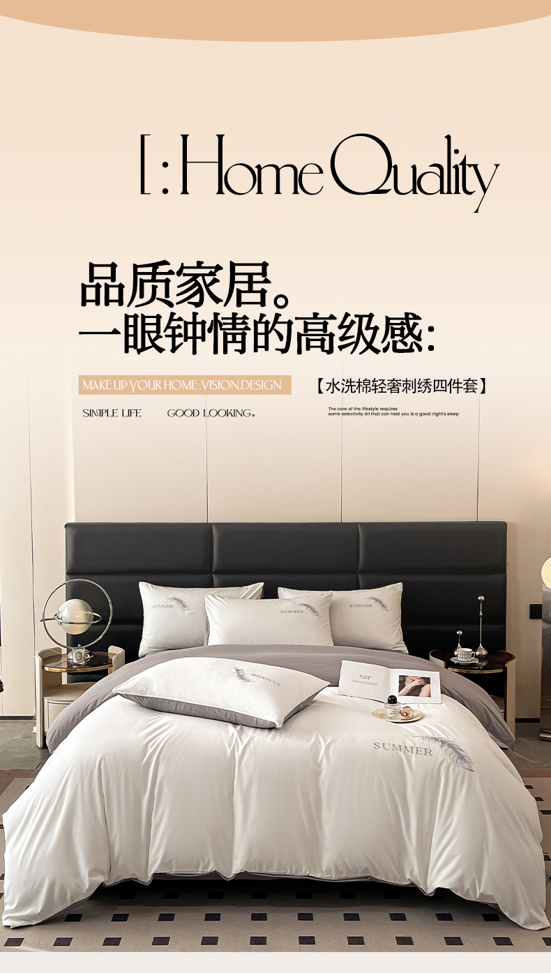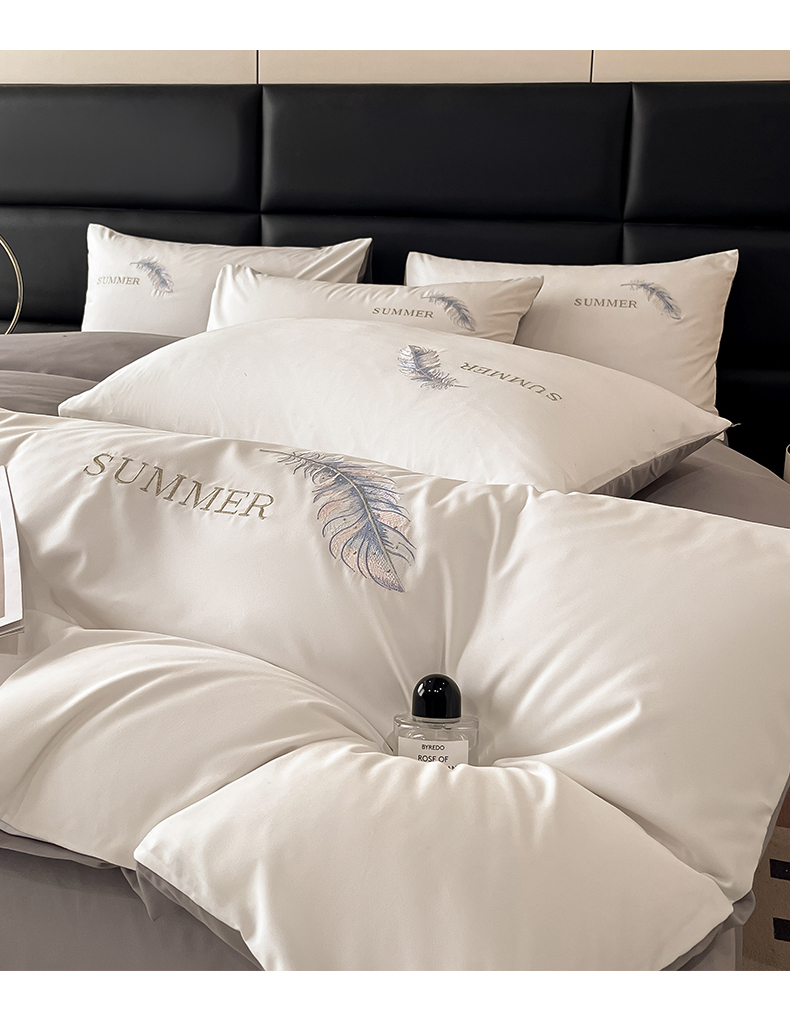当前位置: 91家纺网 > 商品网购 > 床品套件 > 四件套 > 水洗棉四件套 > 火麒麟 2025新款亲肤水洗棉轻奢刺绣四件套-彩羽系列 彩羽-本白-浅灰