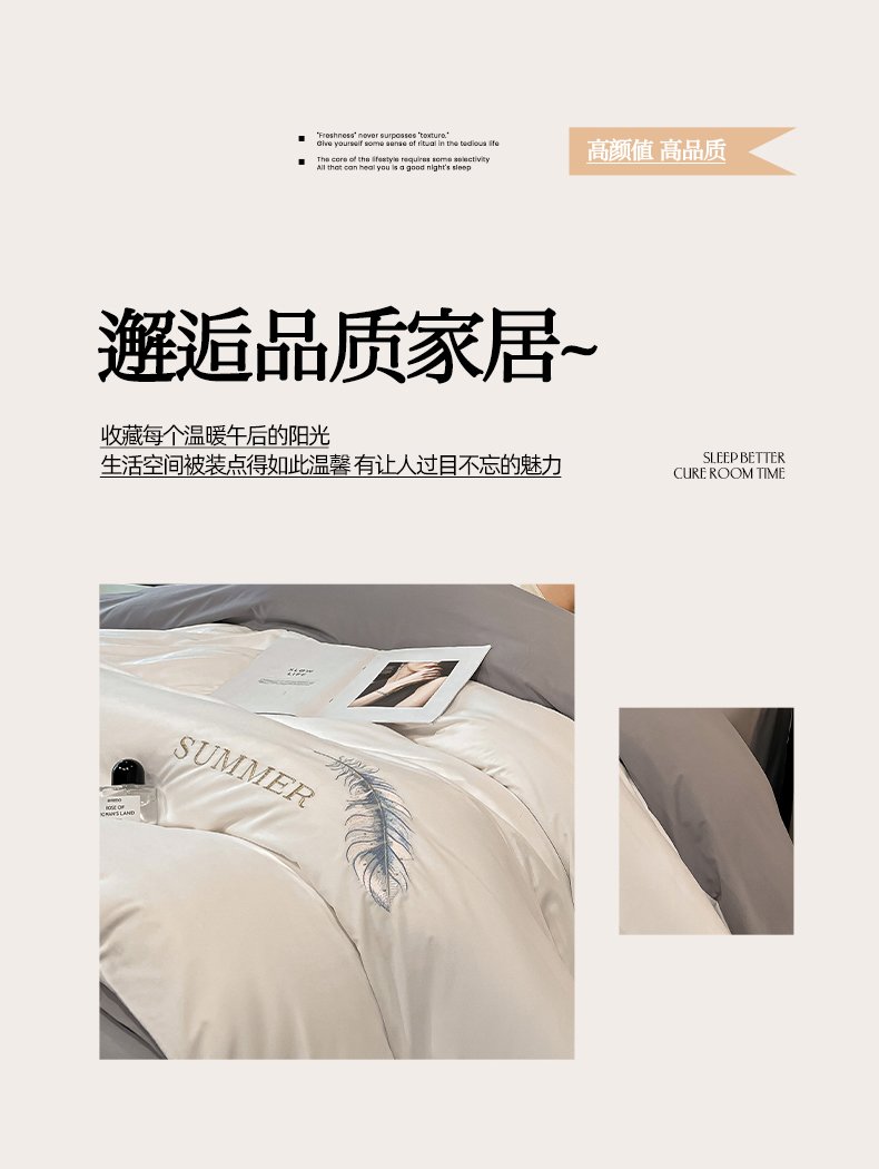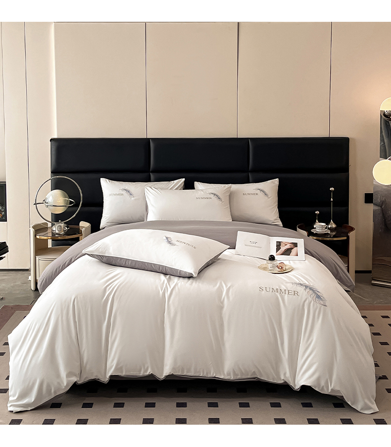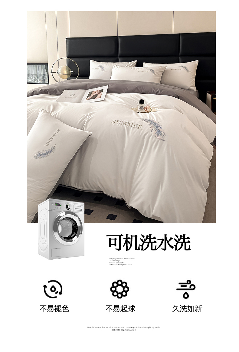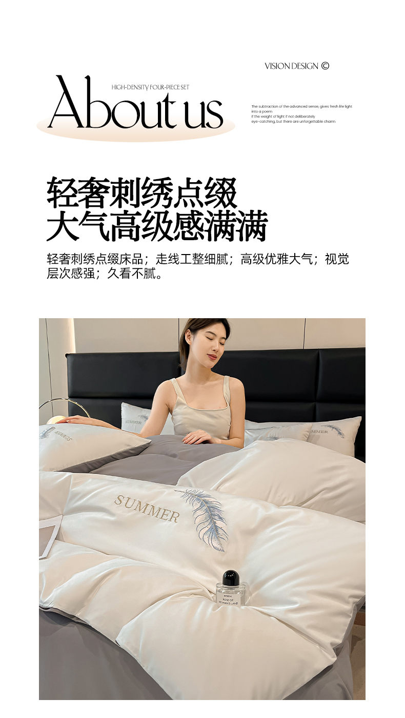 当前位置: 91家纺网 > 商品网购 > 床品套件 > 四件套 > 水洗棉四件套 > 火麒麟 2025新款亲肤水洗棉轻奢刺绣四件套-彩羽系列 彩羽-本白-浅灰