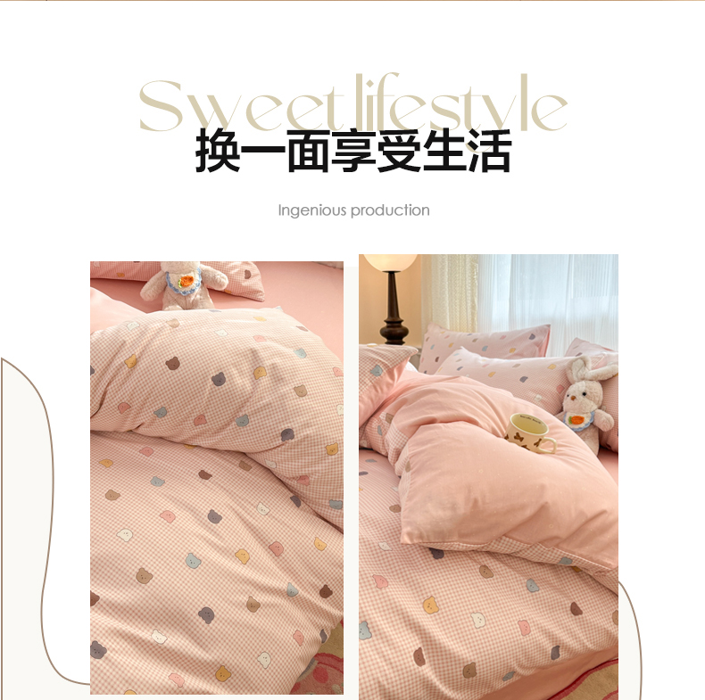 当前位置: 91家纺网 > 商品网购 > 床品套件 > 四件套 > 全棉普通四件套 > 麦伦家居 2025春夏新品全棉斜纹40支13372系列 熊豆豆-粉