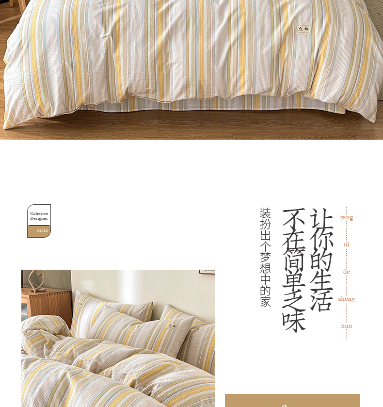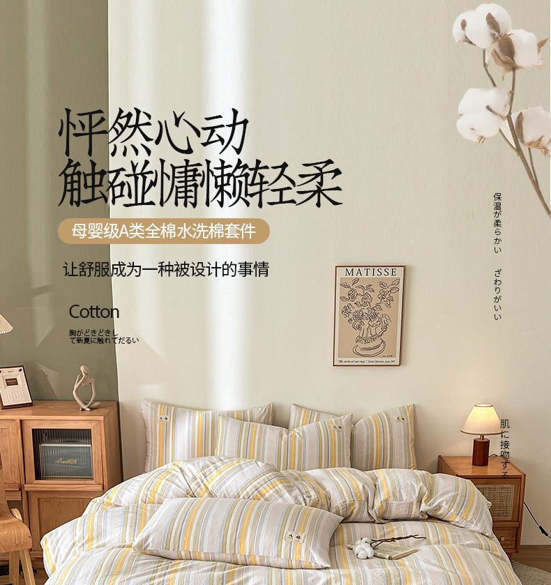 当前位置: 91家纺网 > 商品网购 > 床品套件 > 四件套 > 全棉普通四件套 > 21度C 2025新款A类全棉母婴级四件套单品系列-四件套 沐妍黄
